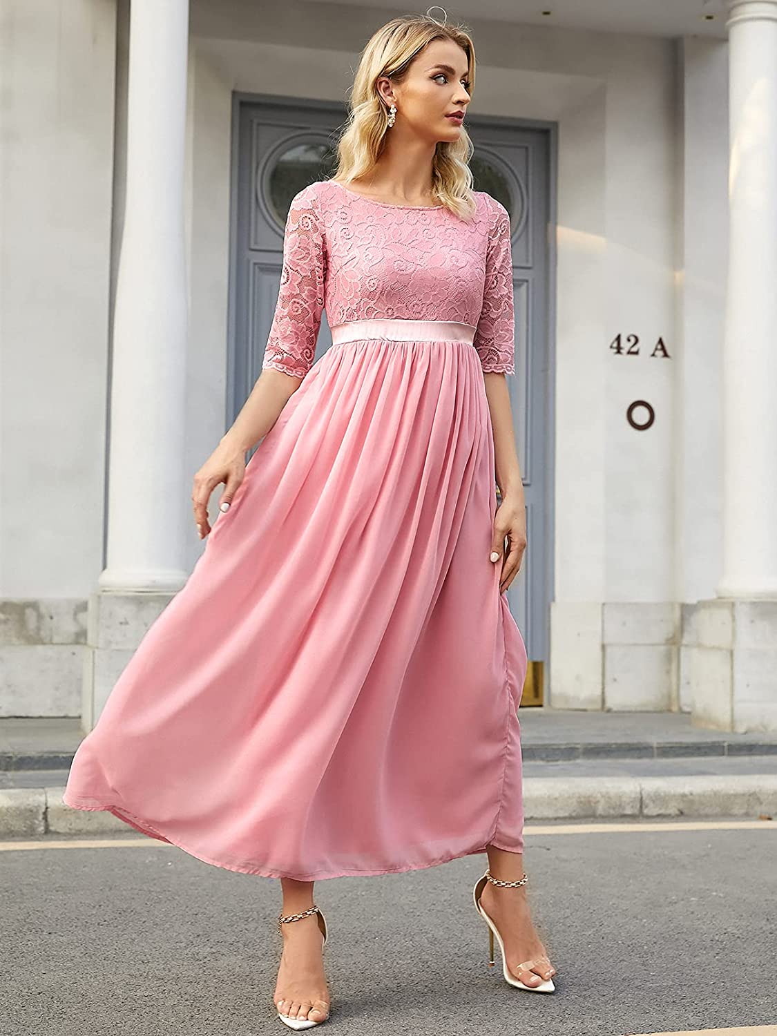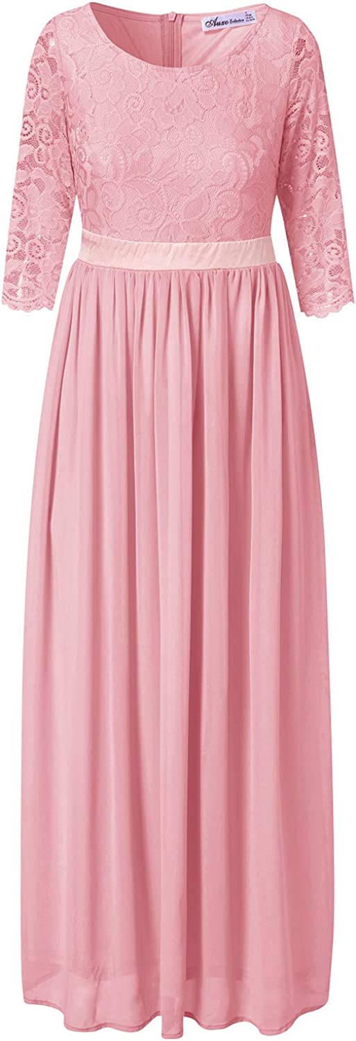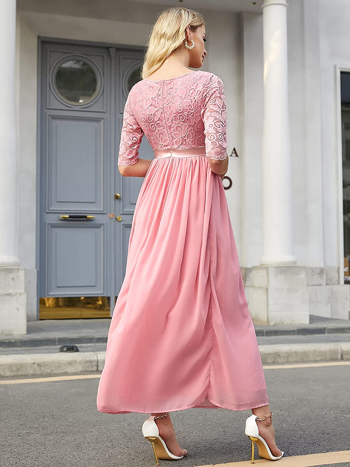 Auxo Women Long Sleeve Floral Lace V Neck Elegant Cocktail Party Wedding Bridesmaid Evening Dress