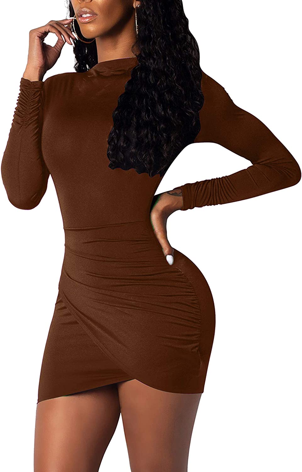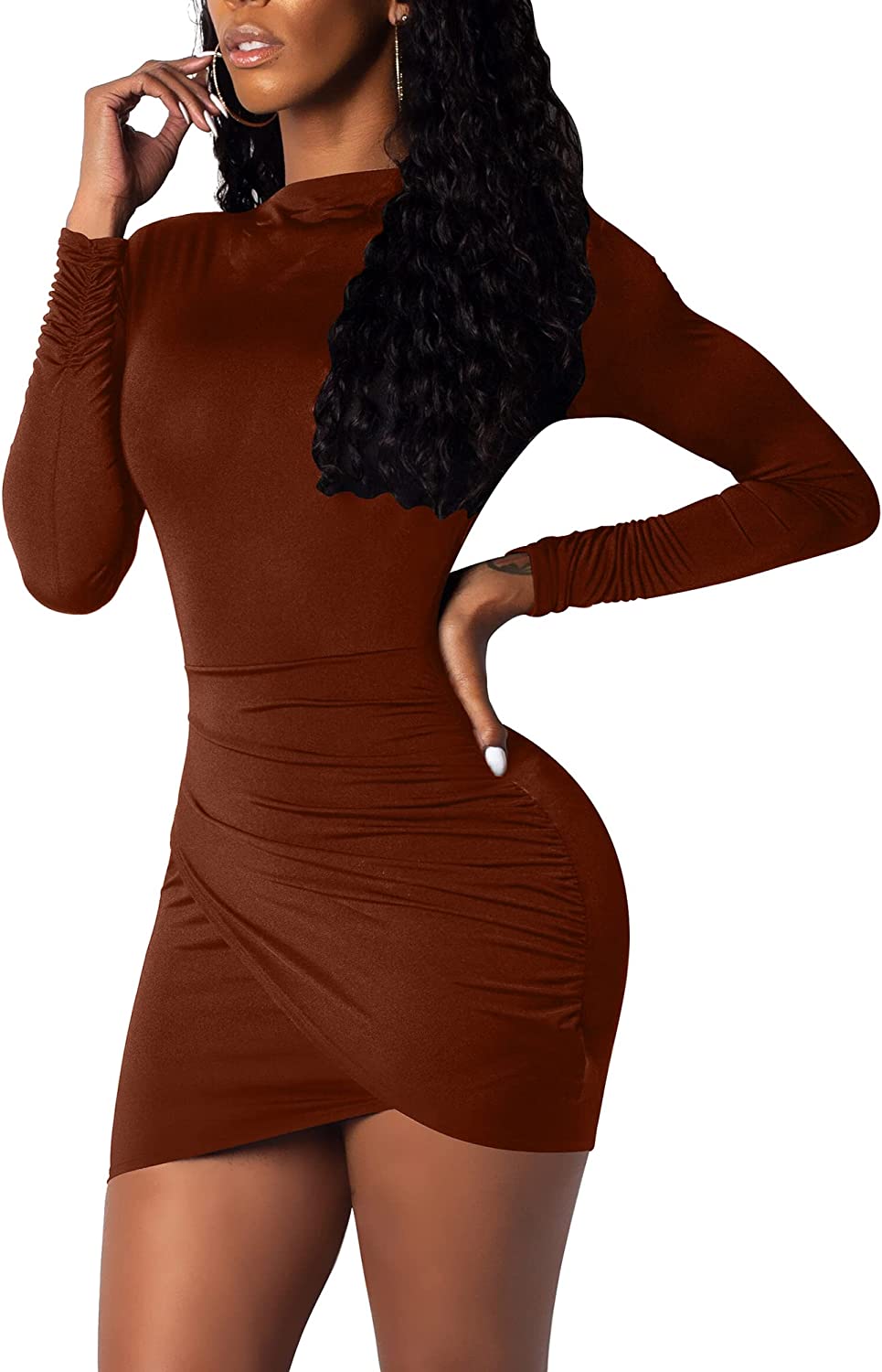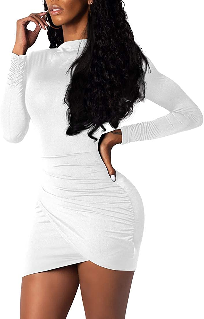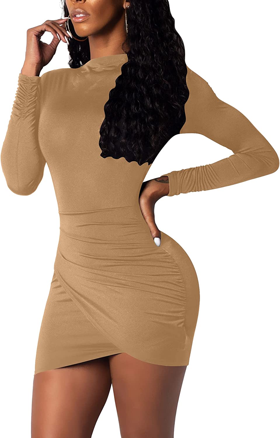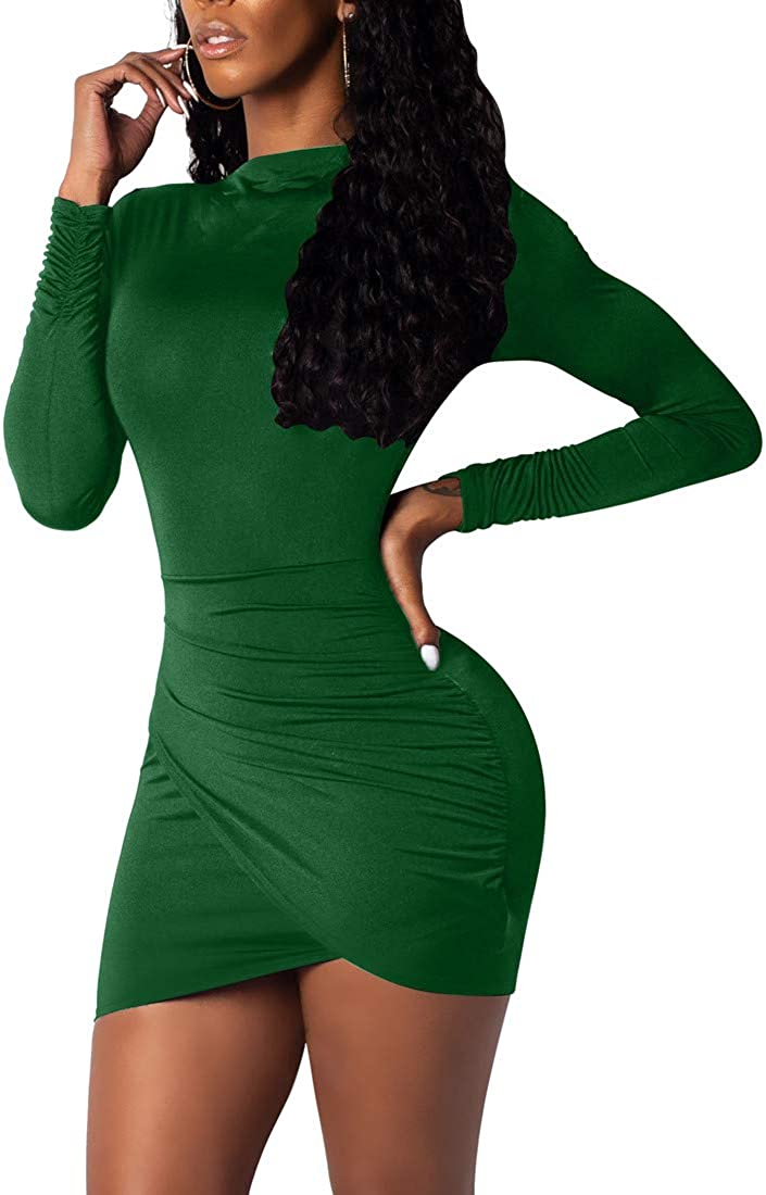 • Design: The tight dress features a stretch fabric, ruched long sleeves and side, ruffled detail, and mock neckline, wrap front, Simple classic, fitted like a glove