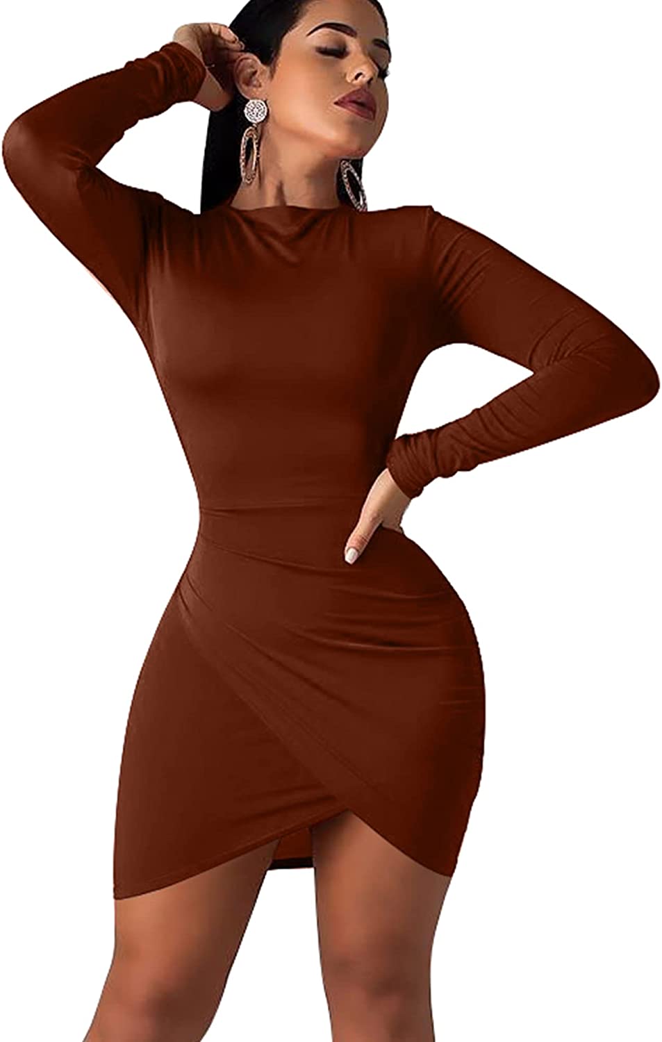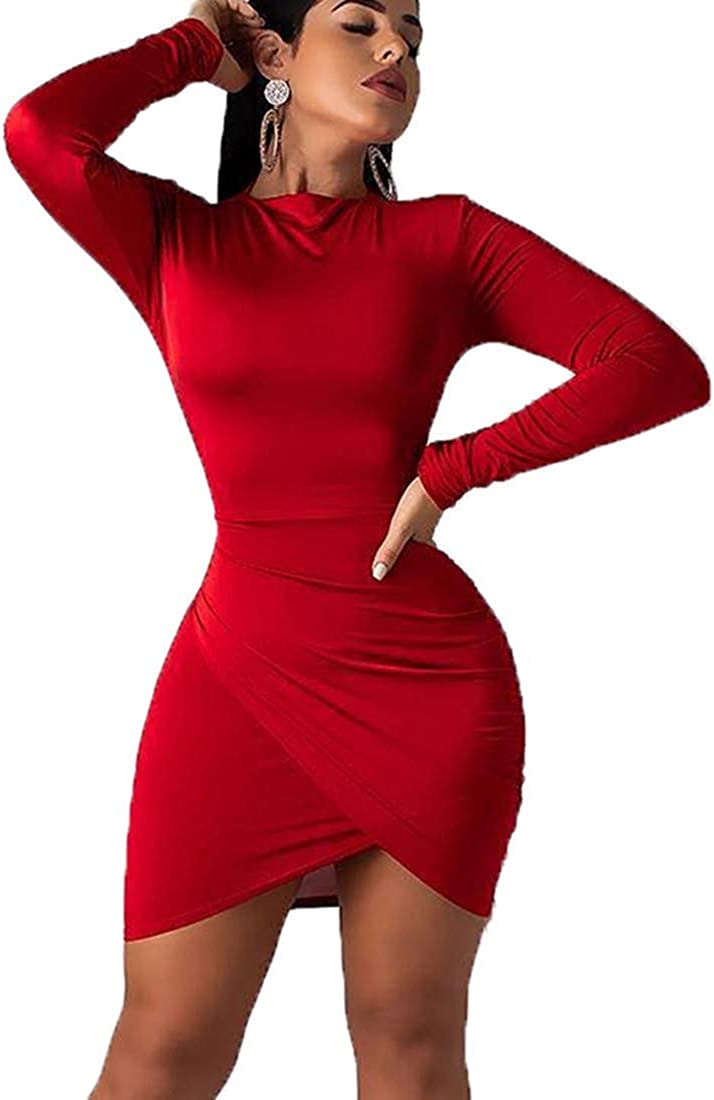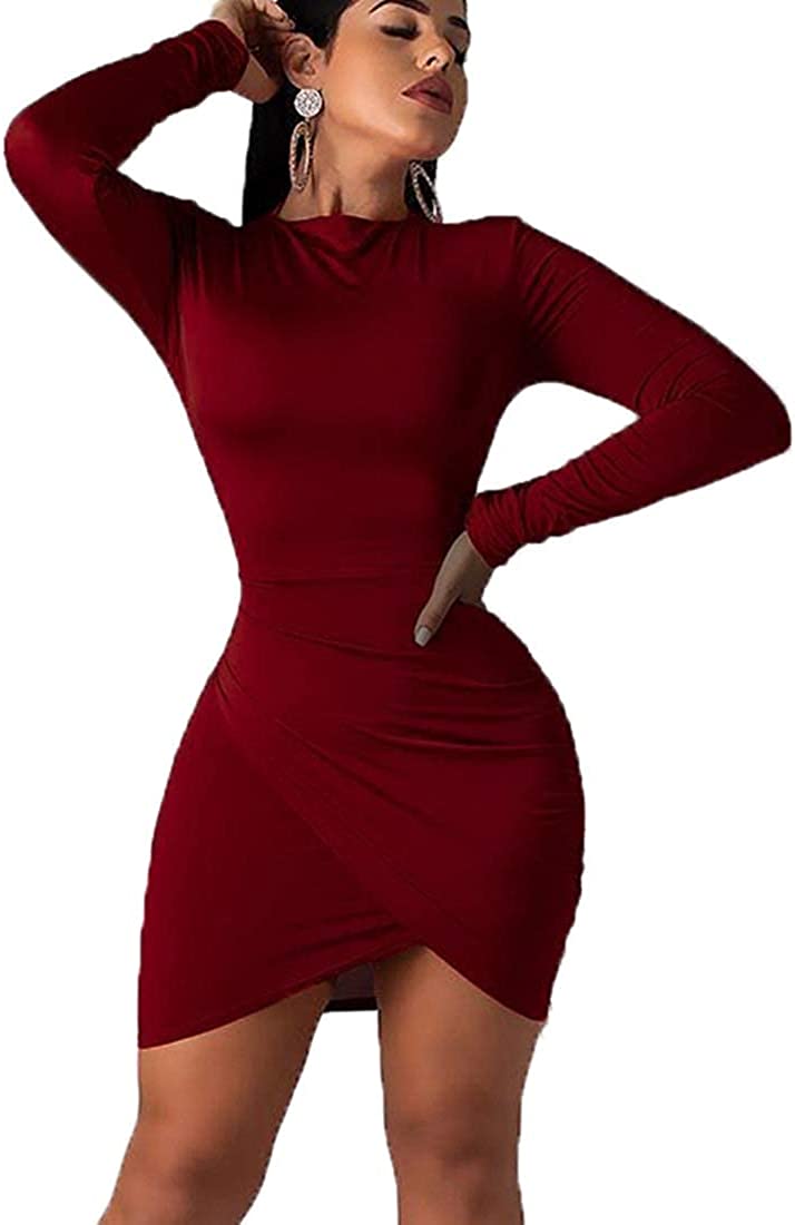 BORIFLORS Women's Sexy Wrap Front Long Sleeve Ruched Bodycon Mini Club Dress