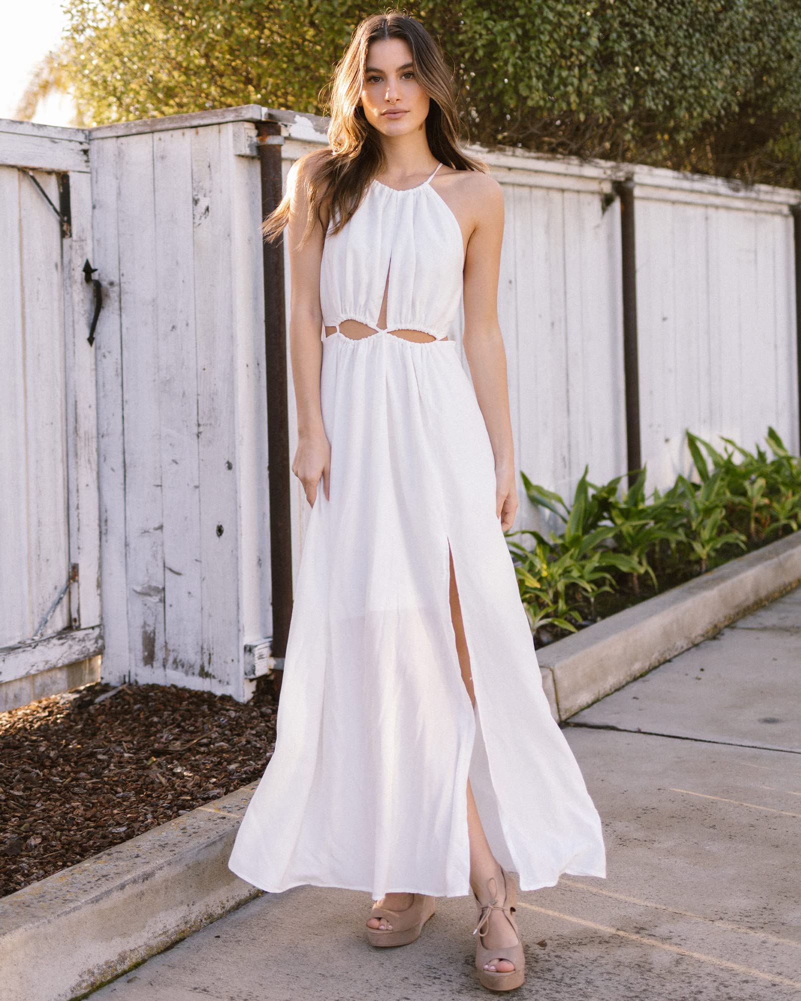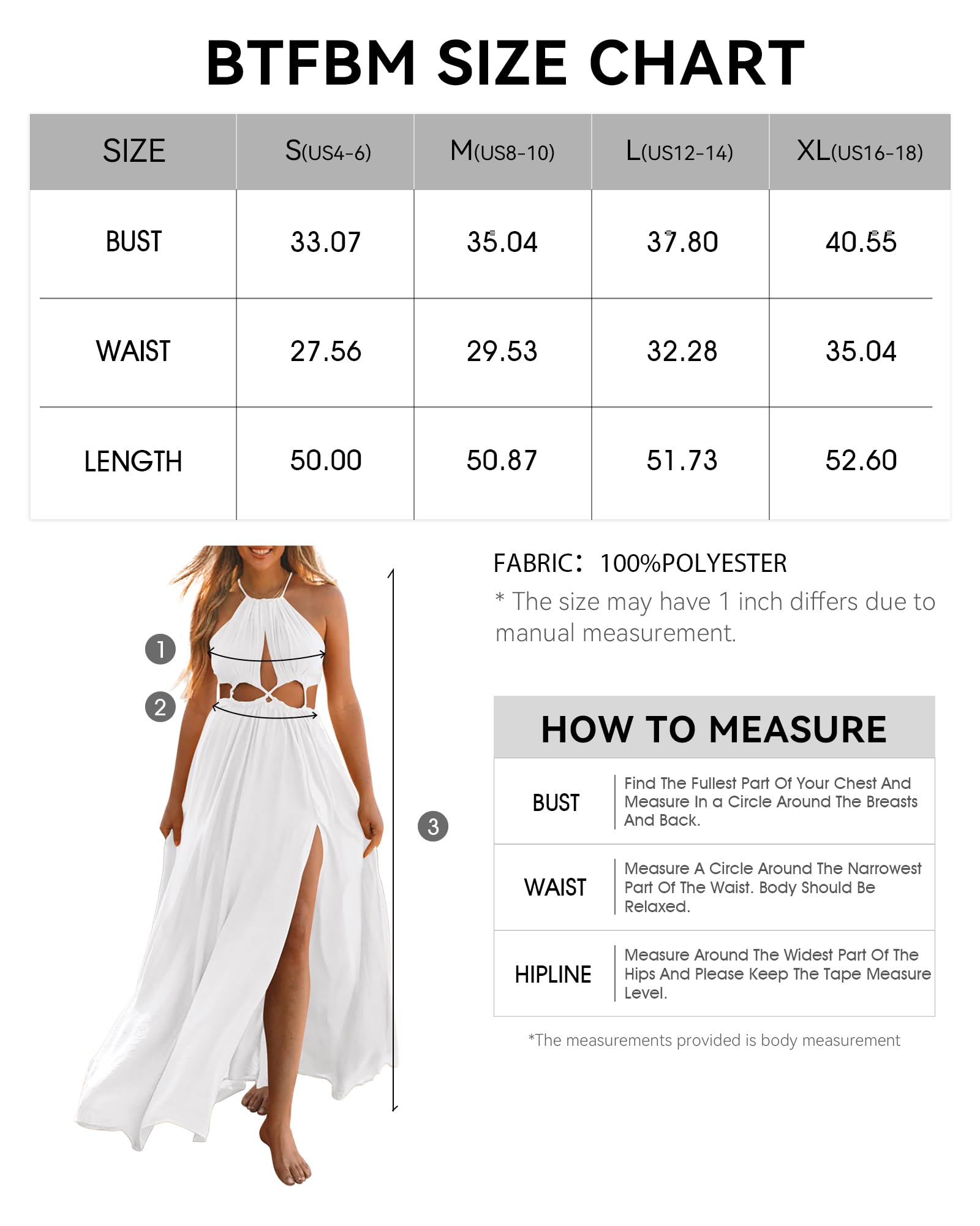 BTFBM Women 2024 Summer Sleeveless Halter Maxi Dress Cutout Backless Slit Boho Party Cocktail Casual Beach Sun Dresses(Solid White, Medium)