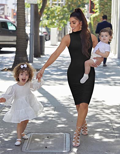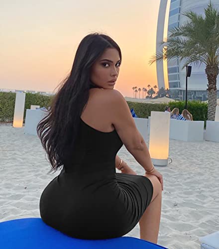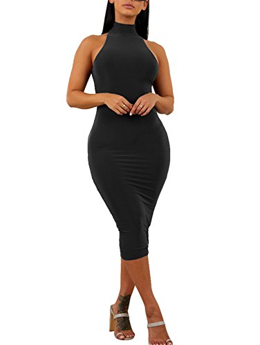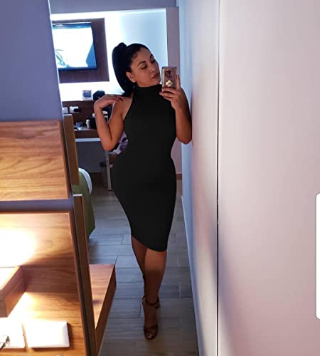 GOBLES Women's Sexy Halter High Neck Elegant Sleeveless Bodycon Midi Club Dress Black