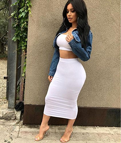 GOBLES Women's Sexy Summer Outfits Bodycon Tank Top Midi Skirt 2 Piece Dress White
