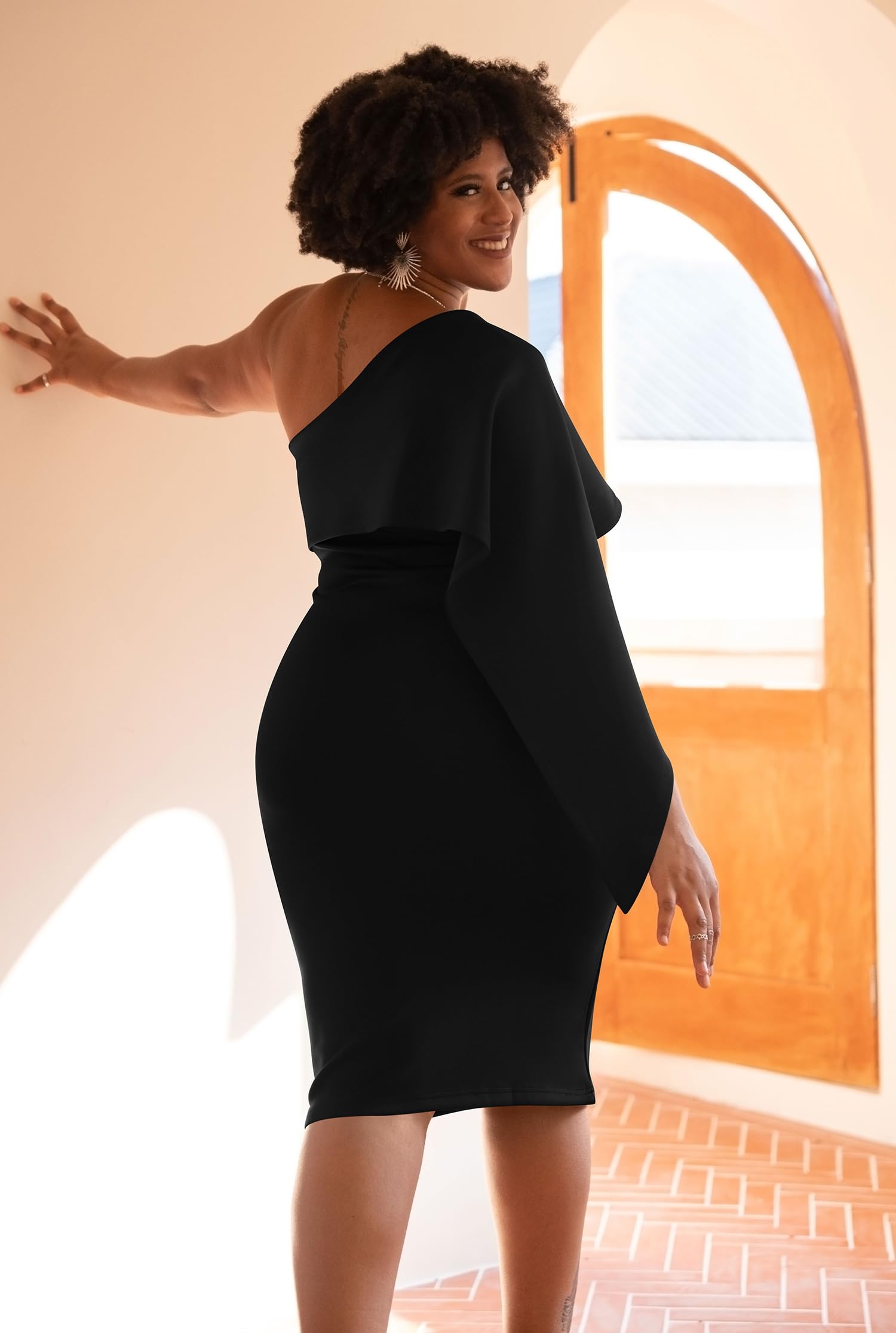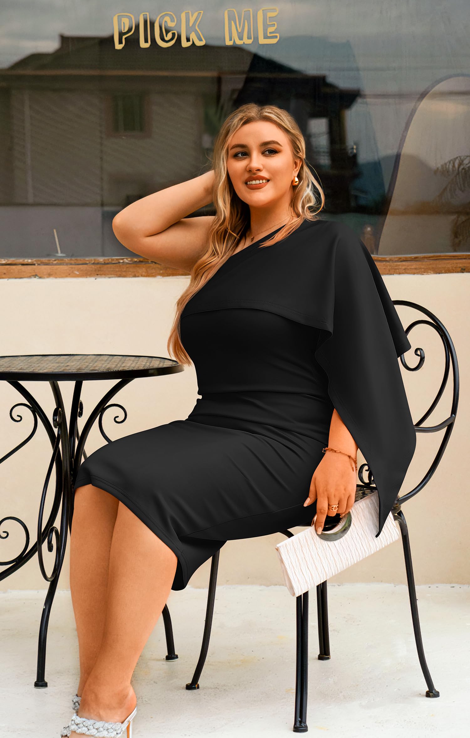 • One shoulder,one sleeve,ruffle sleeve,batwing cape top,backless,covering the knee,midi-length,solid color,tight,bodycon,elegant,classic,sexy