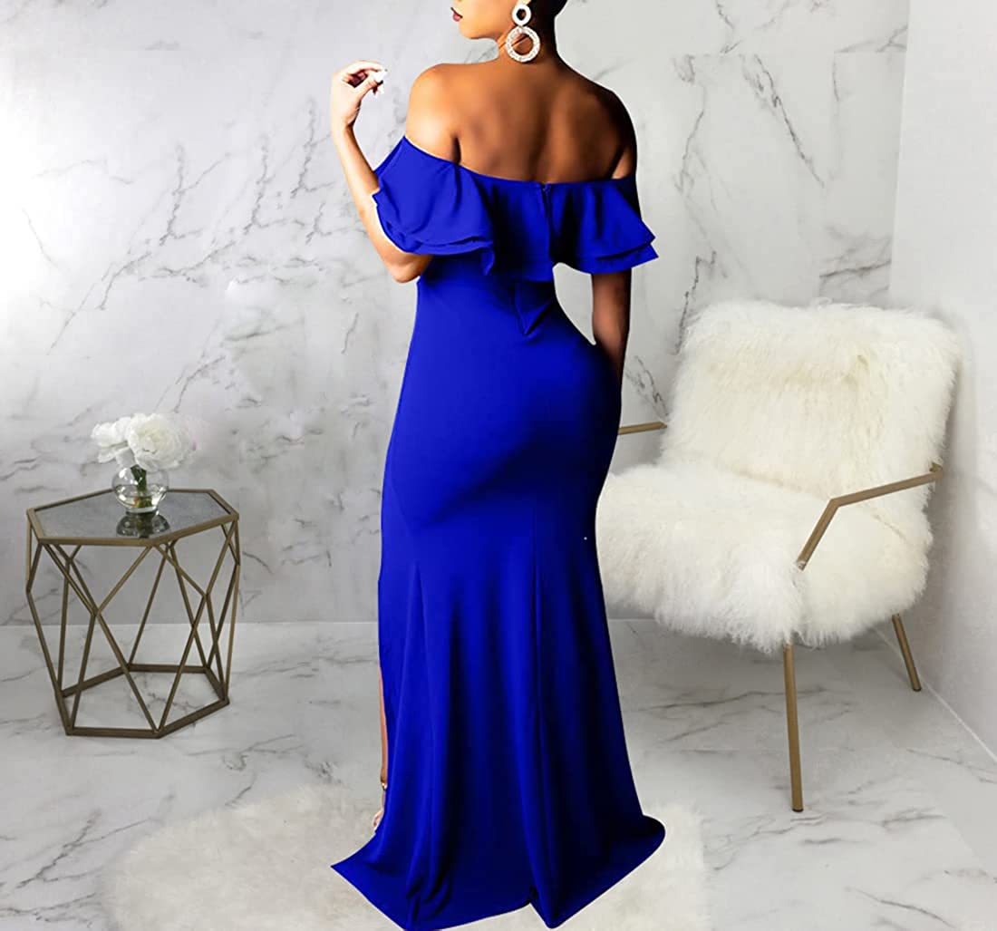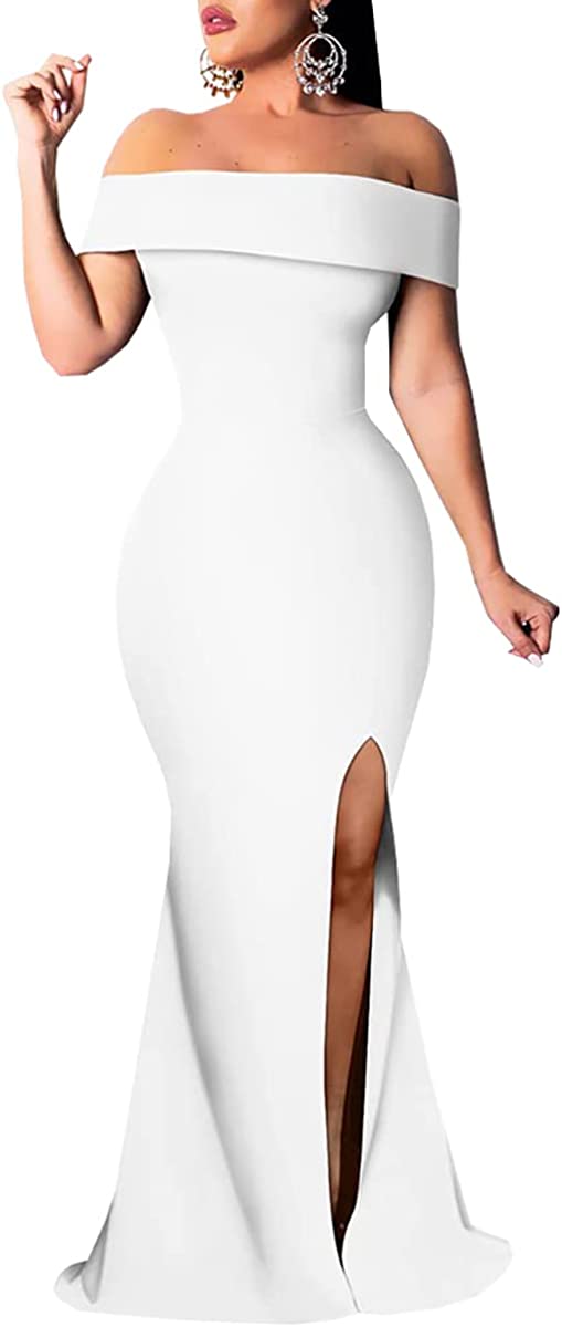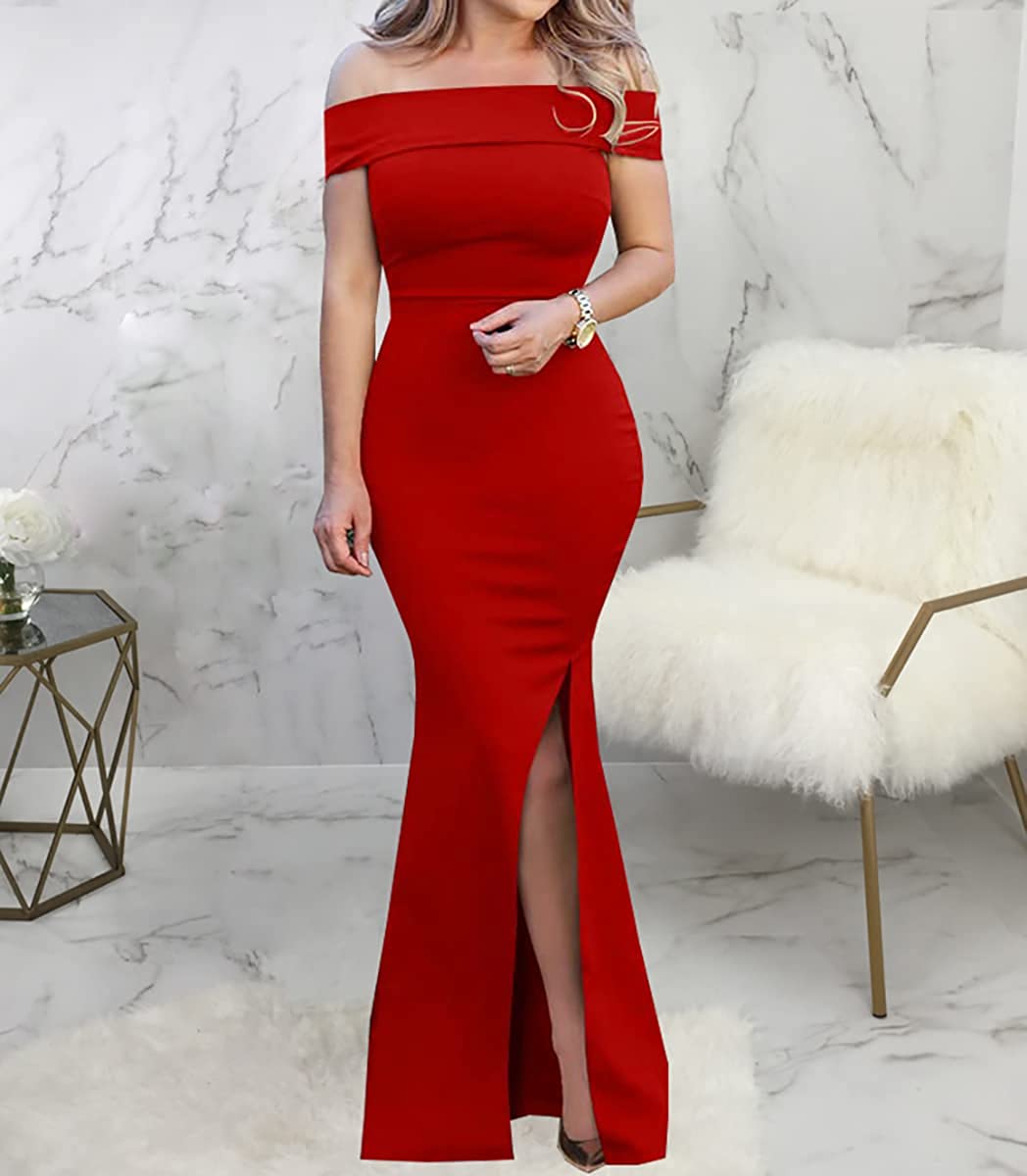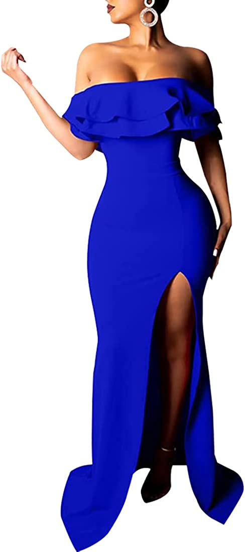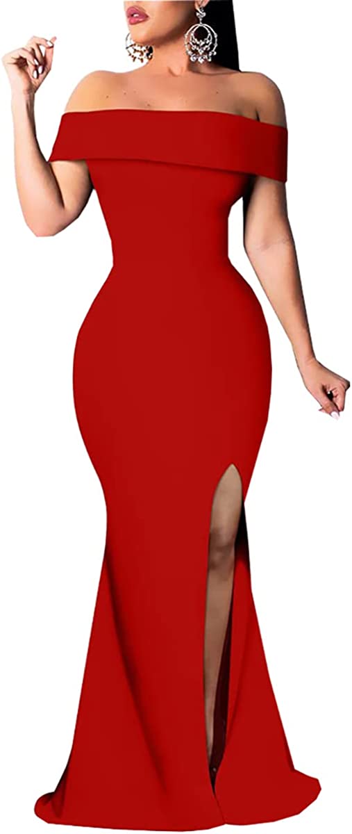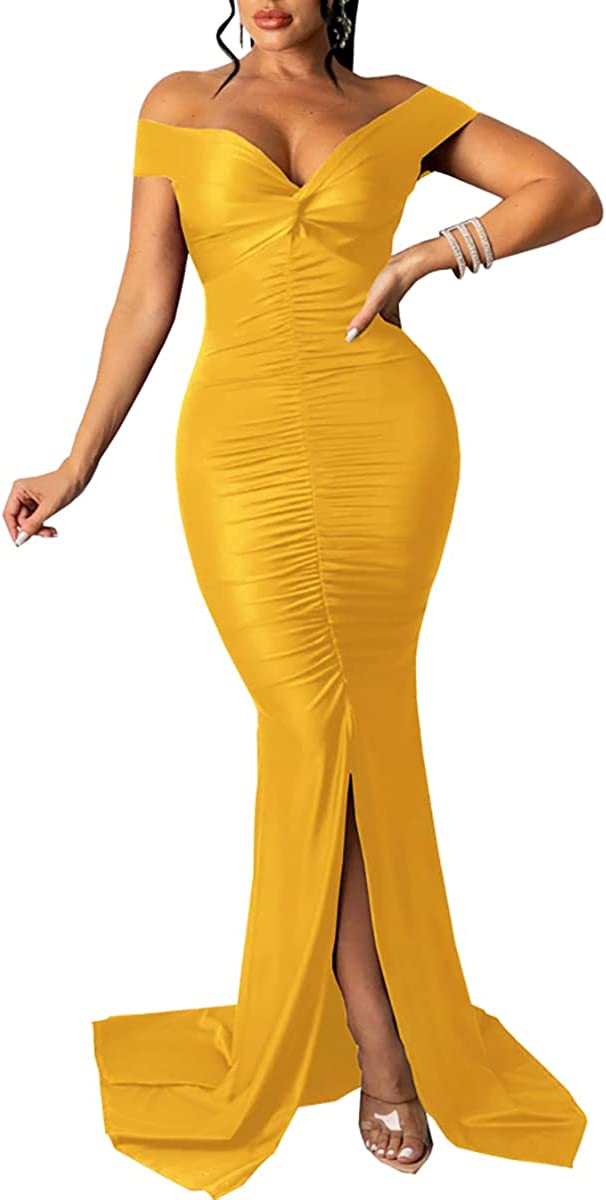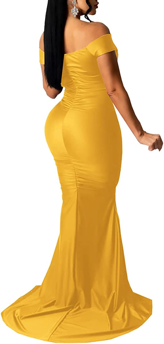 Sexy Formal Dress for Women Ruched Off Shoulder Club Cocktail Bodycon Evening Gown Maxi Long Dresses