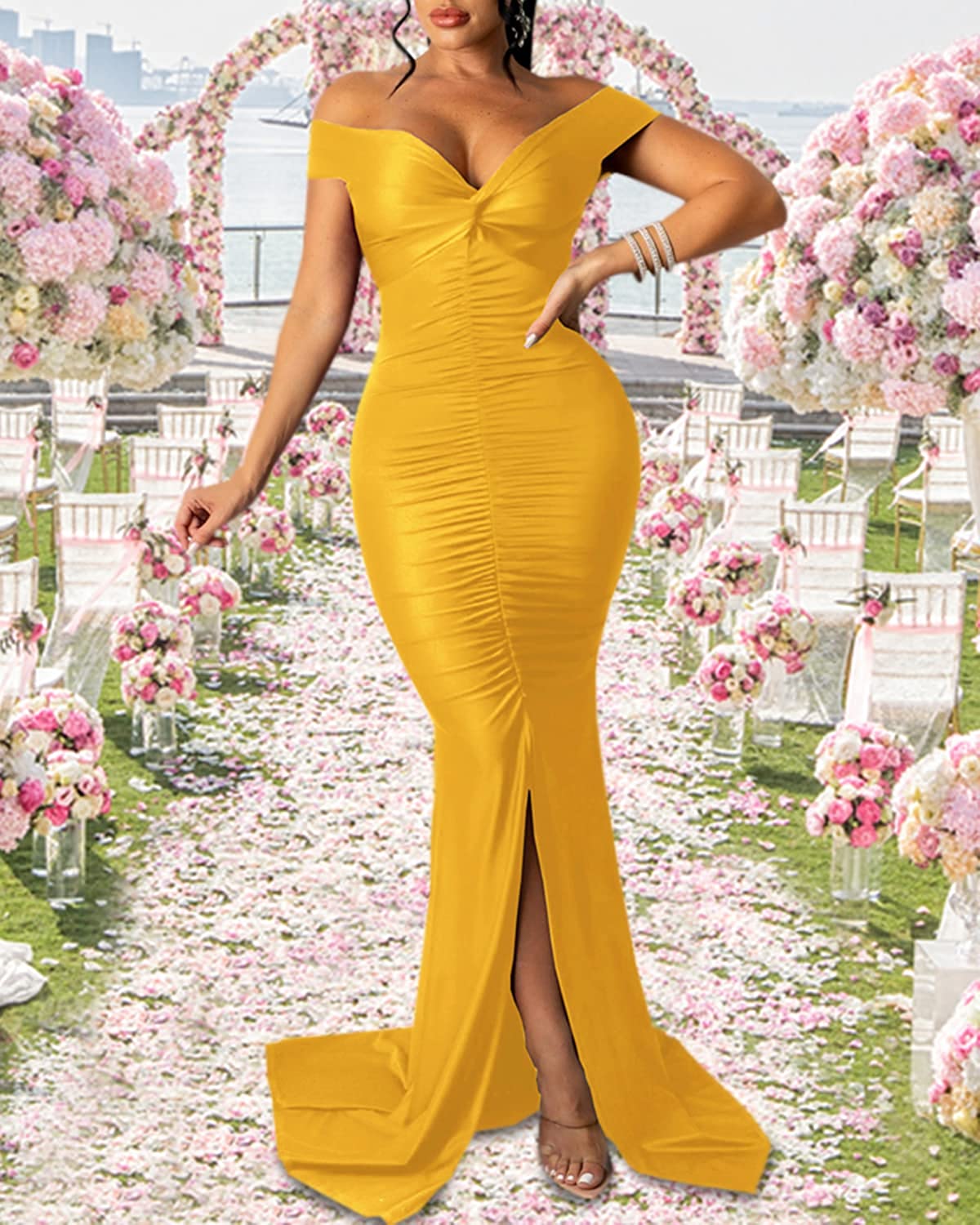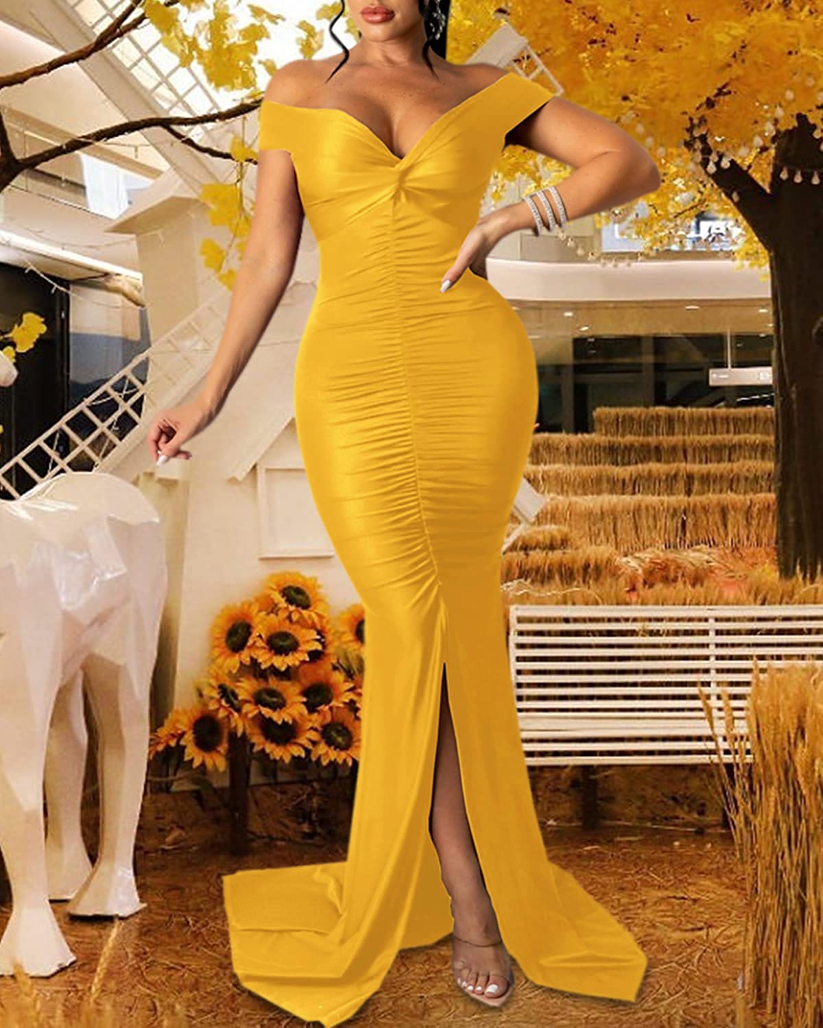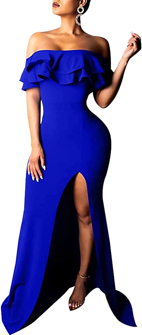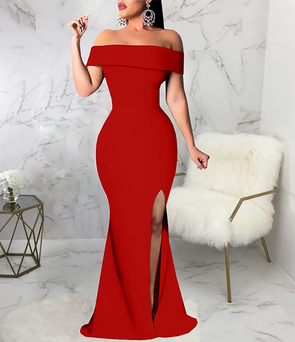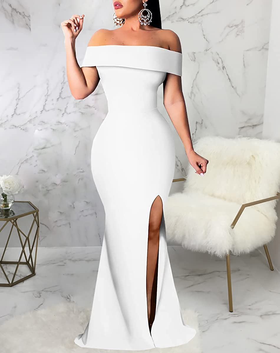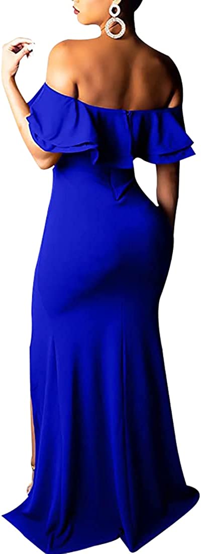 Sexy Formal Dress for Women Ruched Off Shoulder Club Cocktail Bodycon Evening Gown Maxi Long Dresses