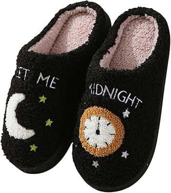 Slippers for Women House Indoor Meet Me at Midnight Fuzzy Slippers