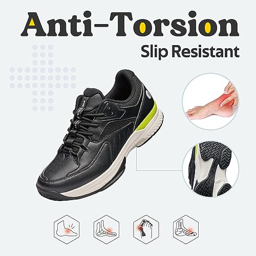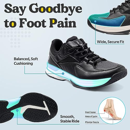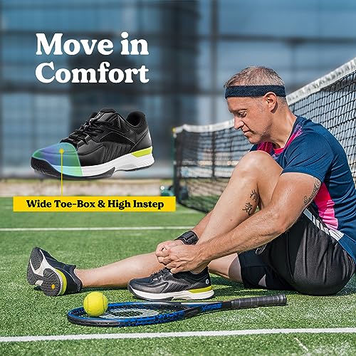 FitVille Men‘s Wide Pickleball Shoes All Court Tennis Shoes with Arch Support for Plantar Fasciitis (Black, 10 X-Wide)