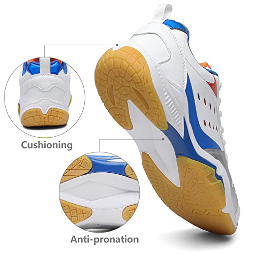 LUPWEE Pickleball Shoes for Men Women All Court Tennis Shoes Lightweight Indoor Outdoor Court Training Racketball Squash Volleyball Sneaker Shoes White Blue M9.5