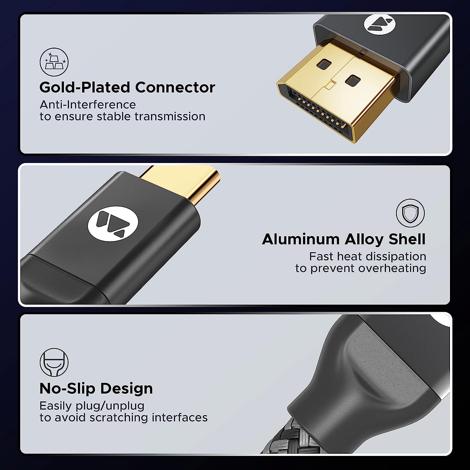 • 【Premium Product Material】To reach for excellent reliability, quality, and durability, we opted for more advanced materials: Gold-plated connectors are more anti-corrosion and interference-resistant than nickel ones for more stable video output. Aluminum alloy shells are stronger and dissipate heat more efficiently than plastic to avoid damaging devices from overheating. Nylon braided cables are more heavy-duty and have a much longer service life than PVC cables. A free velcro strap included.