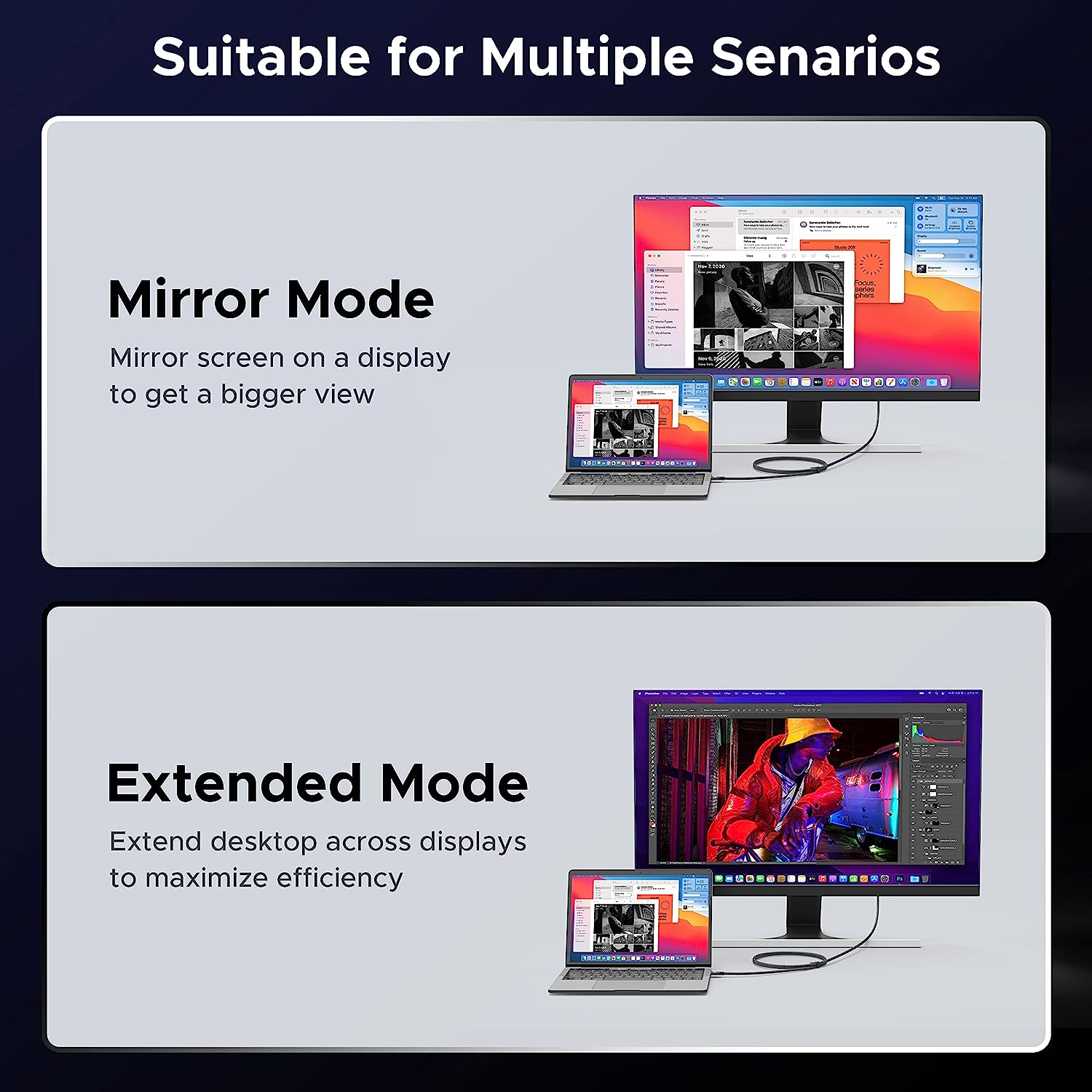 • 【Wide Compatibility】For Type C ports with video output function and Thunderbolt 3 & 4 Ports. Compatible with MacBook Pro 2016-2021, MacBook Air 2018-2022, iMac 2017-2020, iPad Pro 2018-2021, iPad Air 4/5, iPad mini 6, Galaxy Fold Series/A90/ S22/S21/S20/S10/S9/S8, Note 20/10/9/8, Galaxy Tab S9/S8/S7/S6/S5e/S4, Surface Book 2/3, Surface Go/ Go 2/Go 3, Surface Laptop 3/4/SE/Go/Go 2/studio, Surface Pro 7/ 7+/ 8/X, Dell XPS 17/15/13, LG V40/V35/V30/V20/G8/G7/Q8 and more.