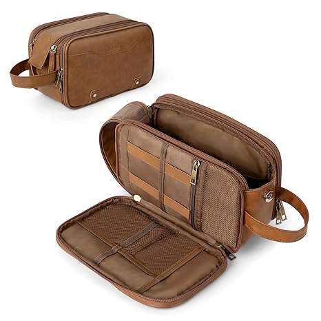 Wedama Toiletry Bag for Men, PU Leather Travel Toiletry Bag with Electronic Organizer Bag Hanging Travel Shaving Bag for Toiletries, Waterproof Dopp Kit for Travel Business Trips Swim Camping, Brown