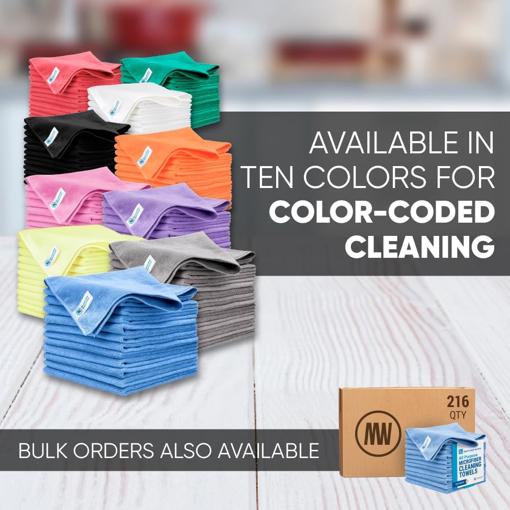 MW Pro Microfiber Cleaning Cloth | White (12 Pack) | Size 16" x 16" | All Purpose Microfiber Towels - Clean, Dust, Polish, Scrub, Absorbent