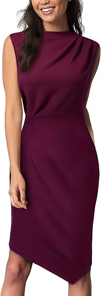 AISIZE Women's Retro Sleeveless High Neck Business Bodycon Pencil Dress