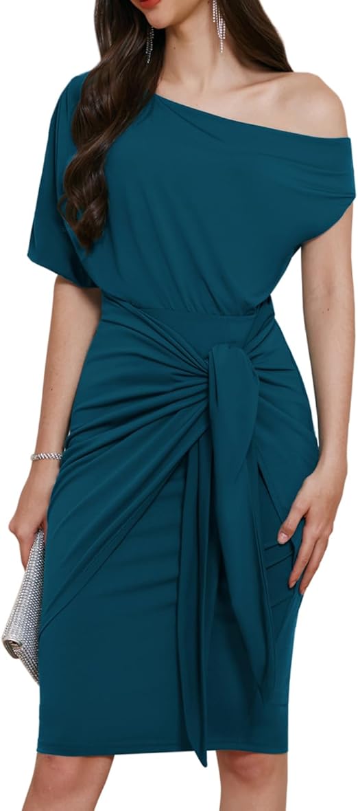 GRACE KARIN Women's One Shoulder Cocktail Dress 2024 Elegant Ruched Belted Wedding Guest Formal Bodycon Dress