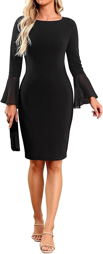 Pinup Fashion Work Dresses for Women Business Long Sleeve Fall Bodycon Pencil Knee Length Sheath Elegant Dress