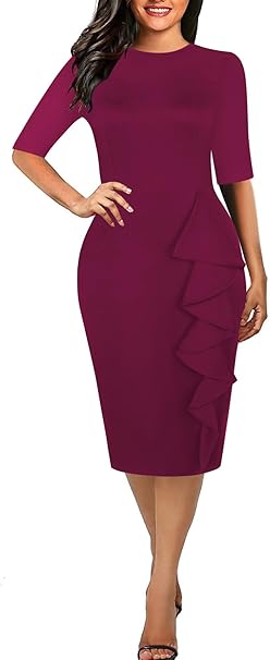 Women's Classic Half Sleeve Scope Neck Sheath Casual Party Work Dress Elegant Bodycon Dresses S055