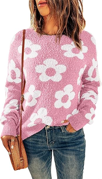 Dokotoo Flowers Sweater Ivory Flora Crewneck Cute Casual Long Sleeve Fall Winter Knitted Pullover Tops