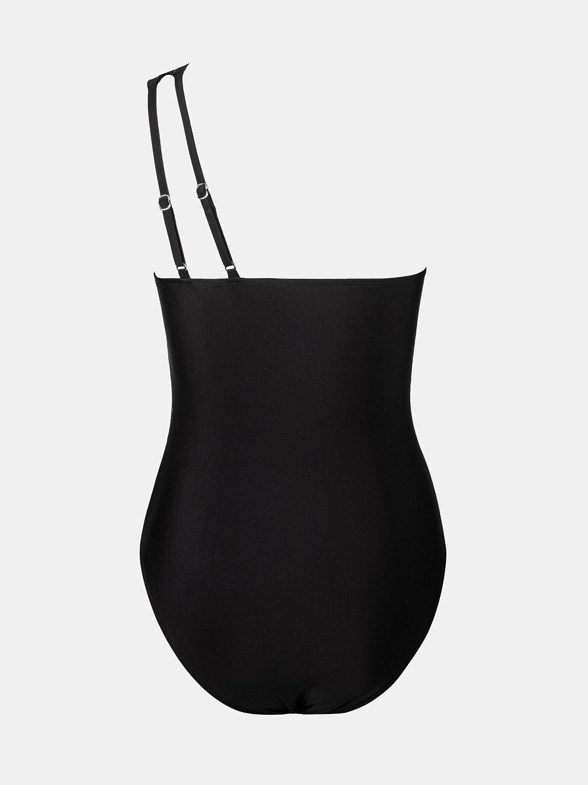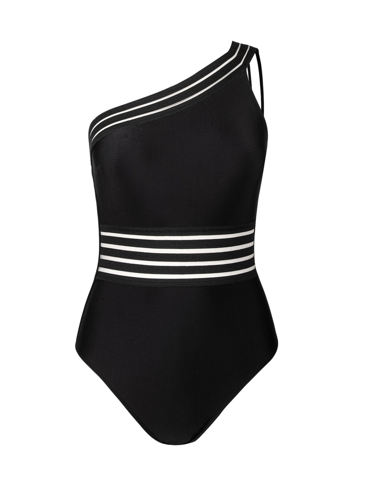 CUPSHE Women's One Piece Swimsuits Bathing Suits One Shoulder Adjustable Straps Cutout Asymmetrical Swimwear Mesh, L Black