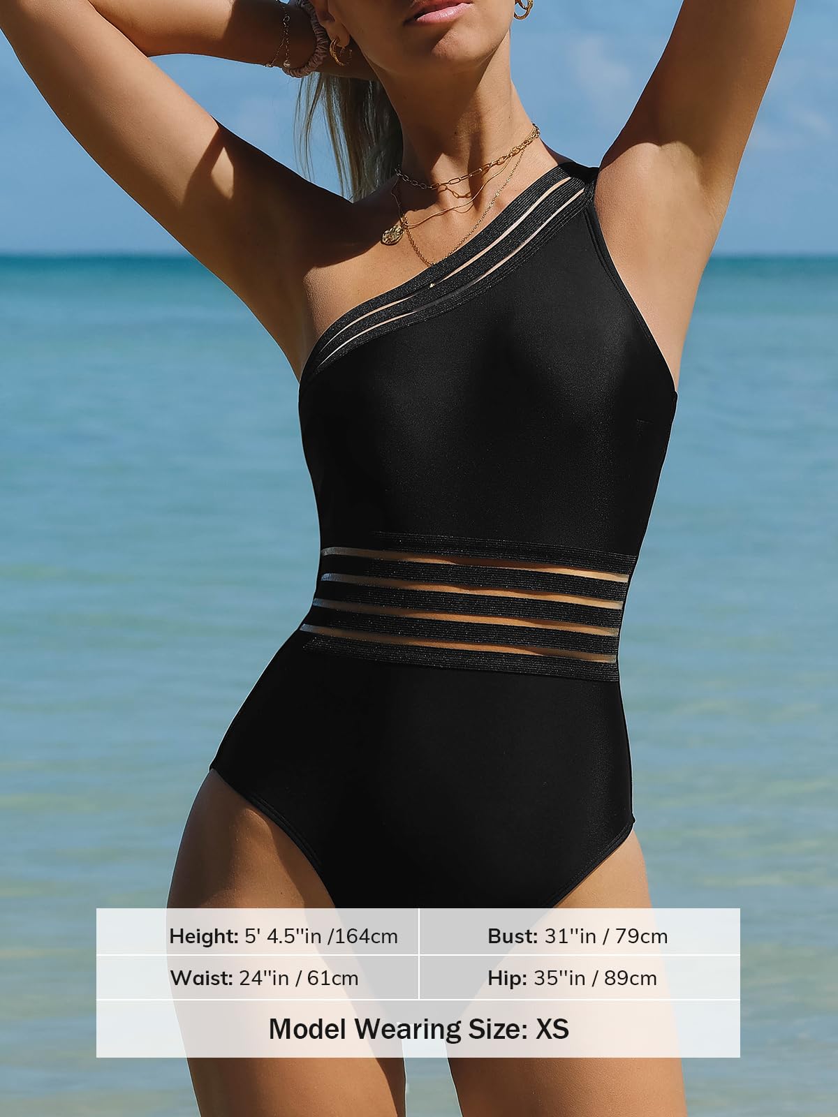 • Design: This One Shoulder One Pieces Swimsuit for Women Features Cutout and Asymmetrical Design Can Show Your Nice Curve. The Mesh Bathing Suits with Adjustable Straps Can Give You Feel Comfortable.