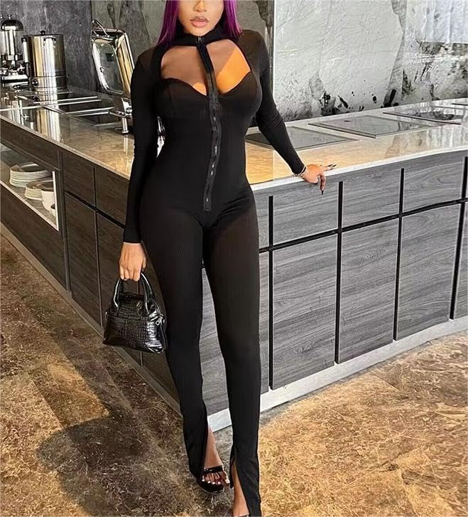 • FEATURE: High neck, long sleeve, solid color, slim pants, zipper, hollow out, black jumpsuit for women, long sleeve jumpsuit for women, one piece jumpsuit, full body jumpsuit, long sleeve bodysuit jumpsuit, full body jumpsuit, long sleeve bodysuit, shapewear bodysuit, black bodysuit women, black long sleeve bodysuit women.