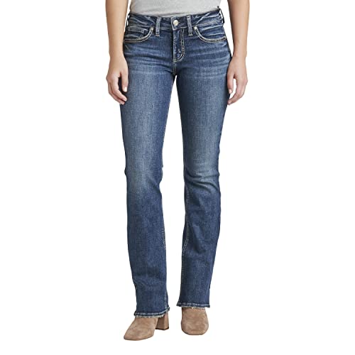 Silver Jeans Co. Women's Britt Low Rise Curvy Fit Slim Bootcut Jeans, Med Wash SDK394, 28W x 31L