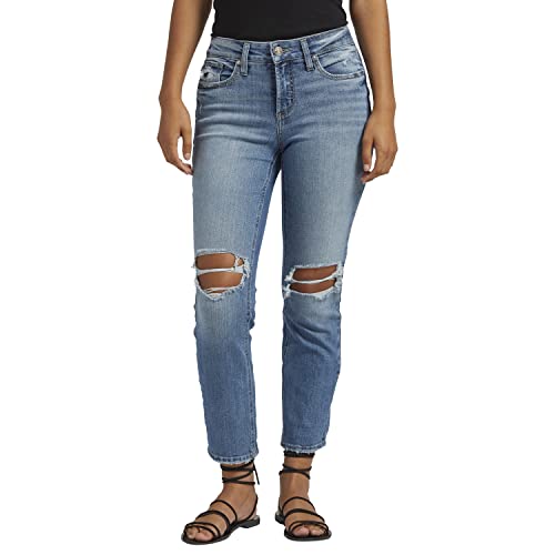 Silver Jeans Co. Women's Suki Mid Rise Curvy Fit Straight Crop Jeans, Med Wash EAE245, 30W x 27L