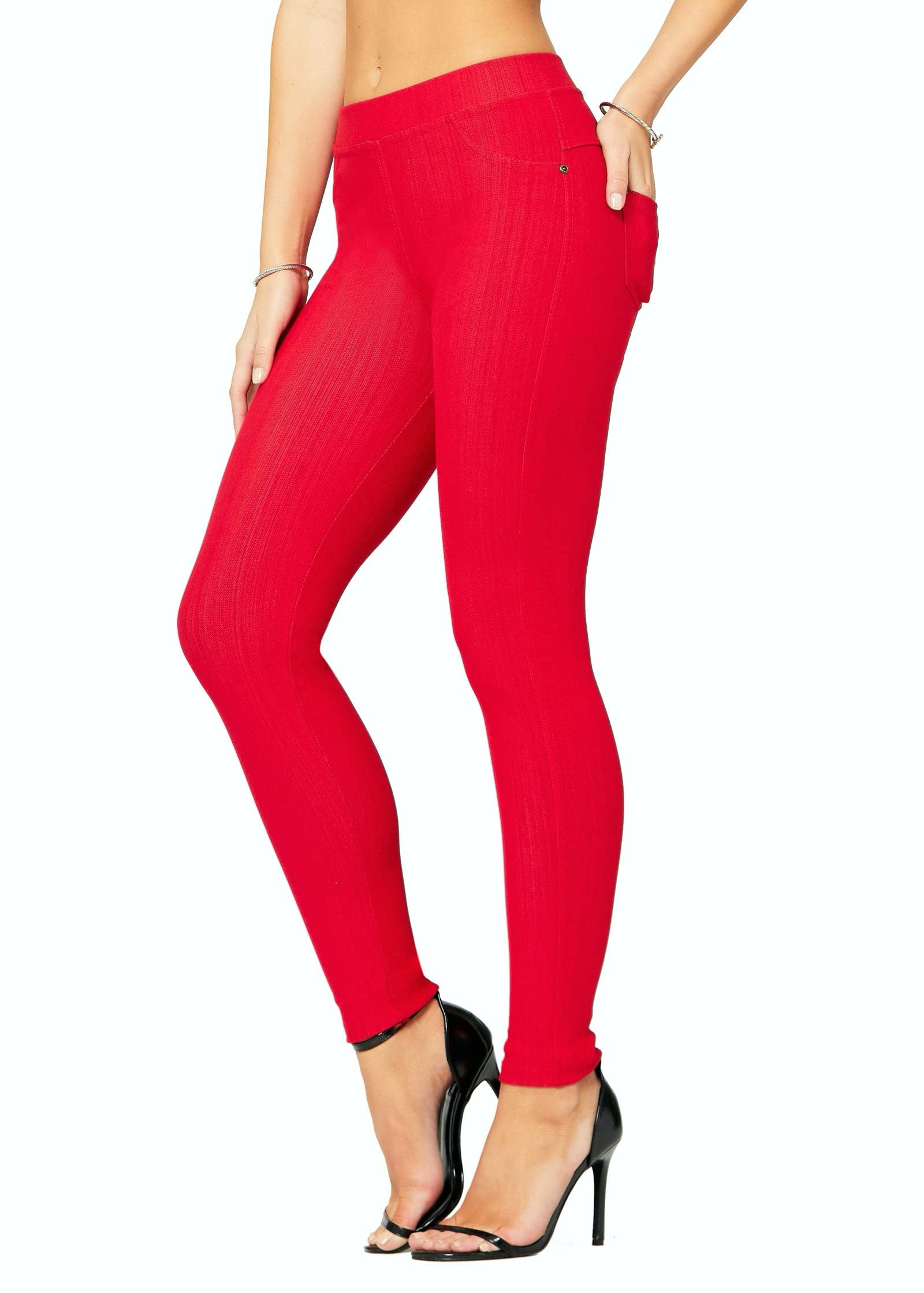 Conceited Premium Stretch Soft High Waisted Jeggings for Women - Denim Leggings - Cotton Blend - Red - 0-10