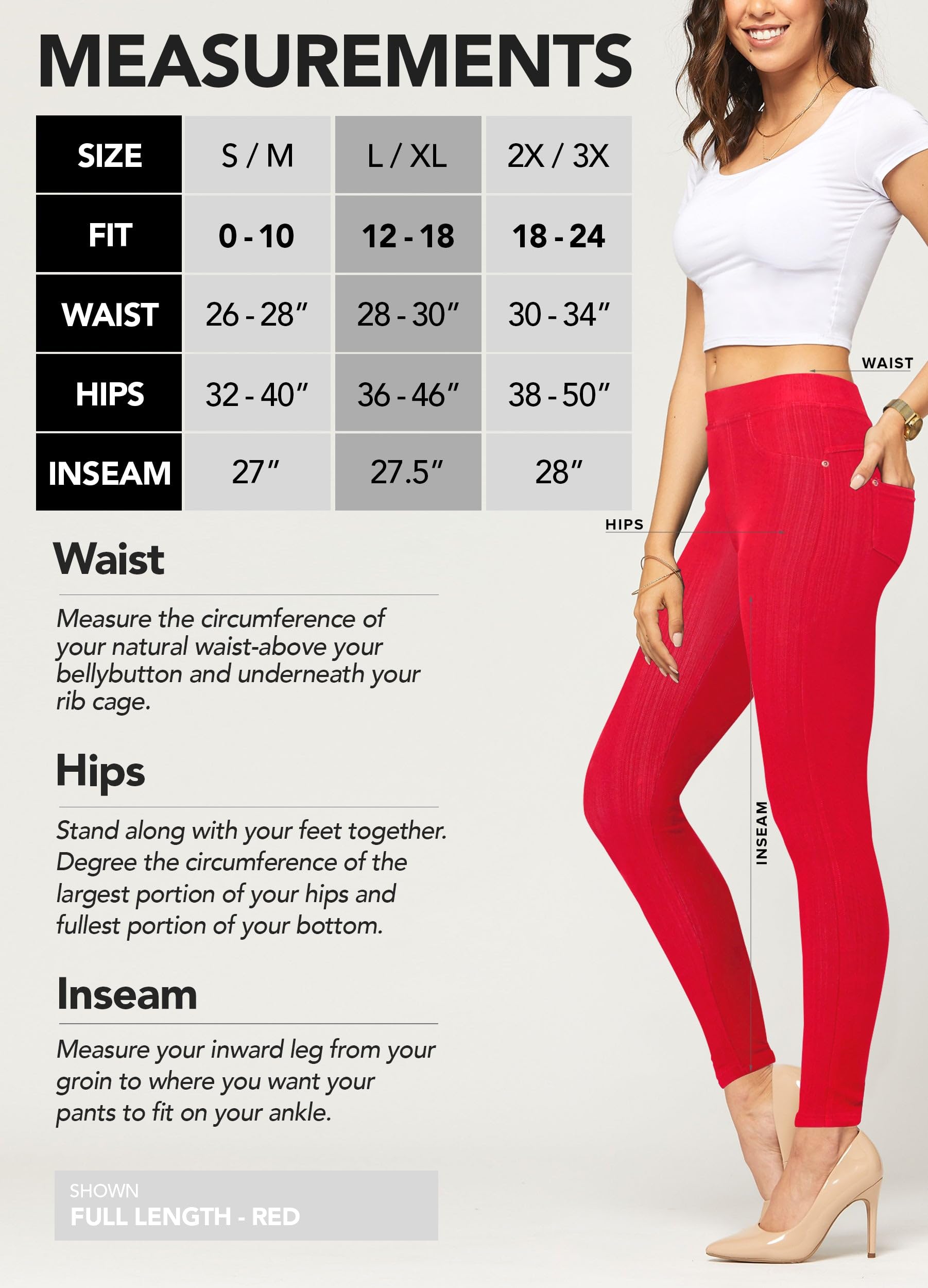 • FLATTERING - Designed to contour in all the right places and textured to hide all imperfections.With multiple colors: Denim, Black, Charcoal, Navy, Khaki, White, etc.