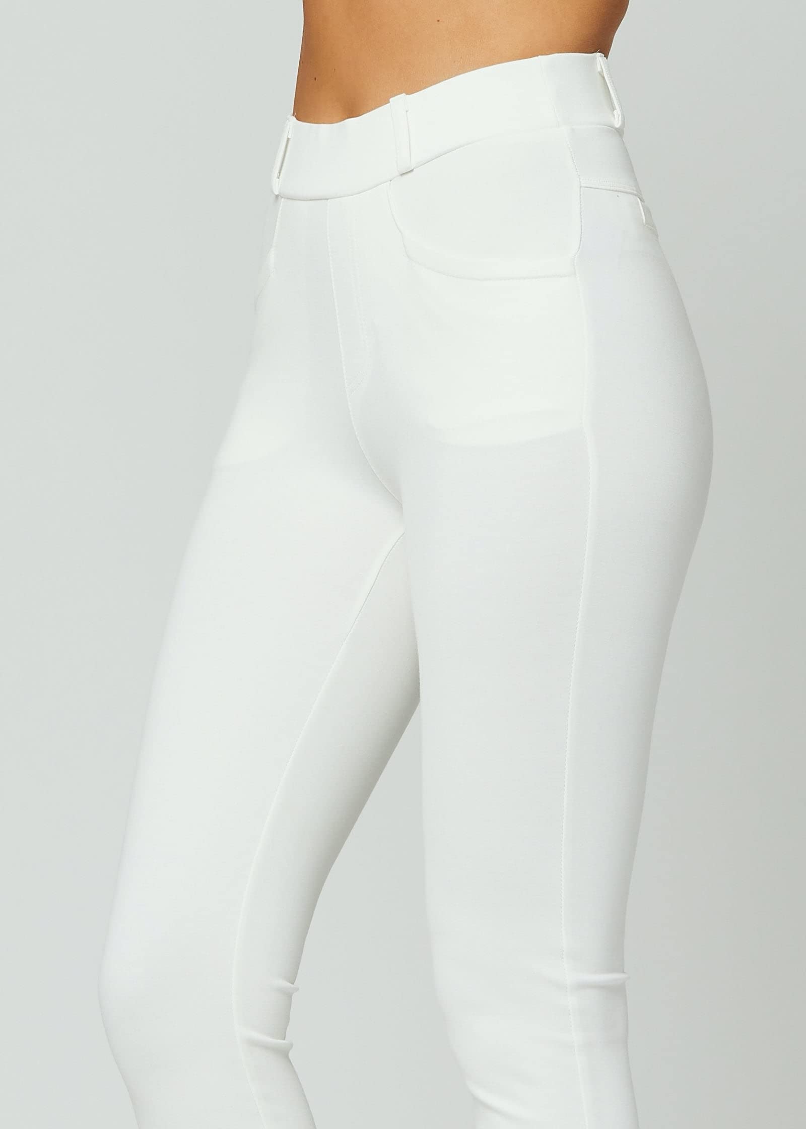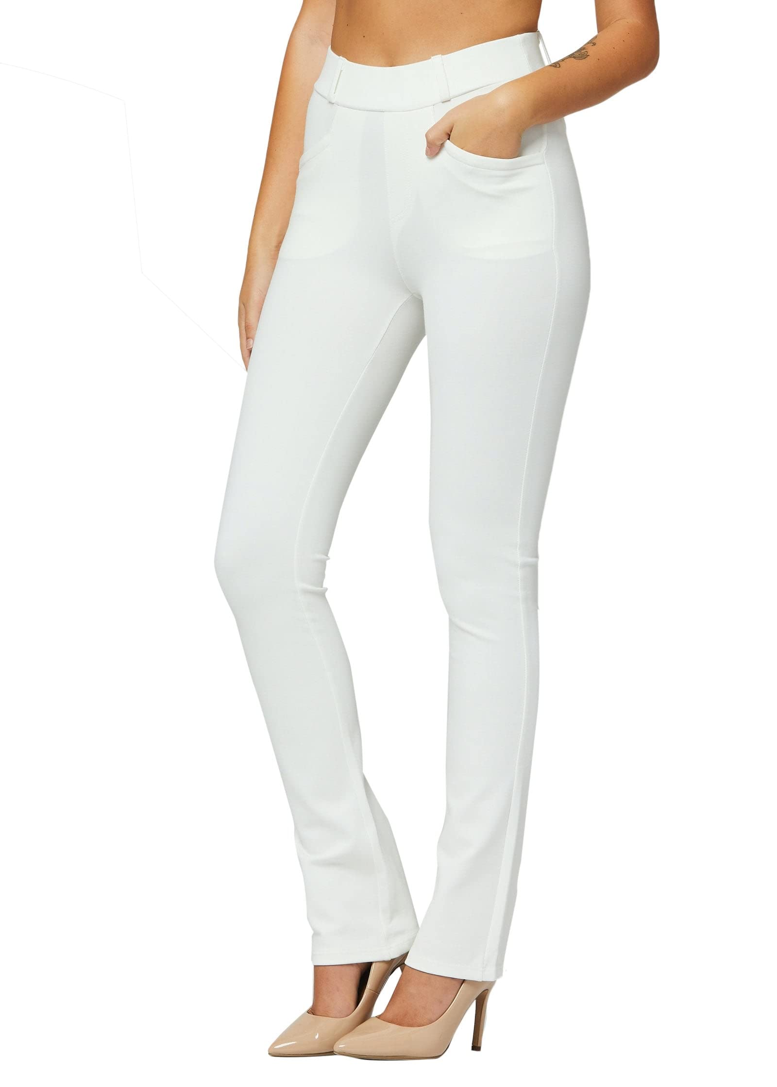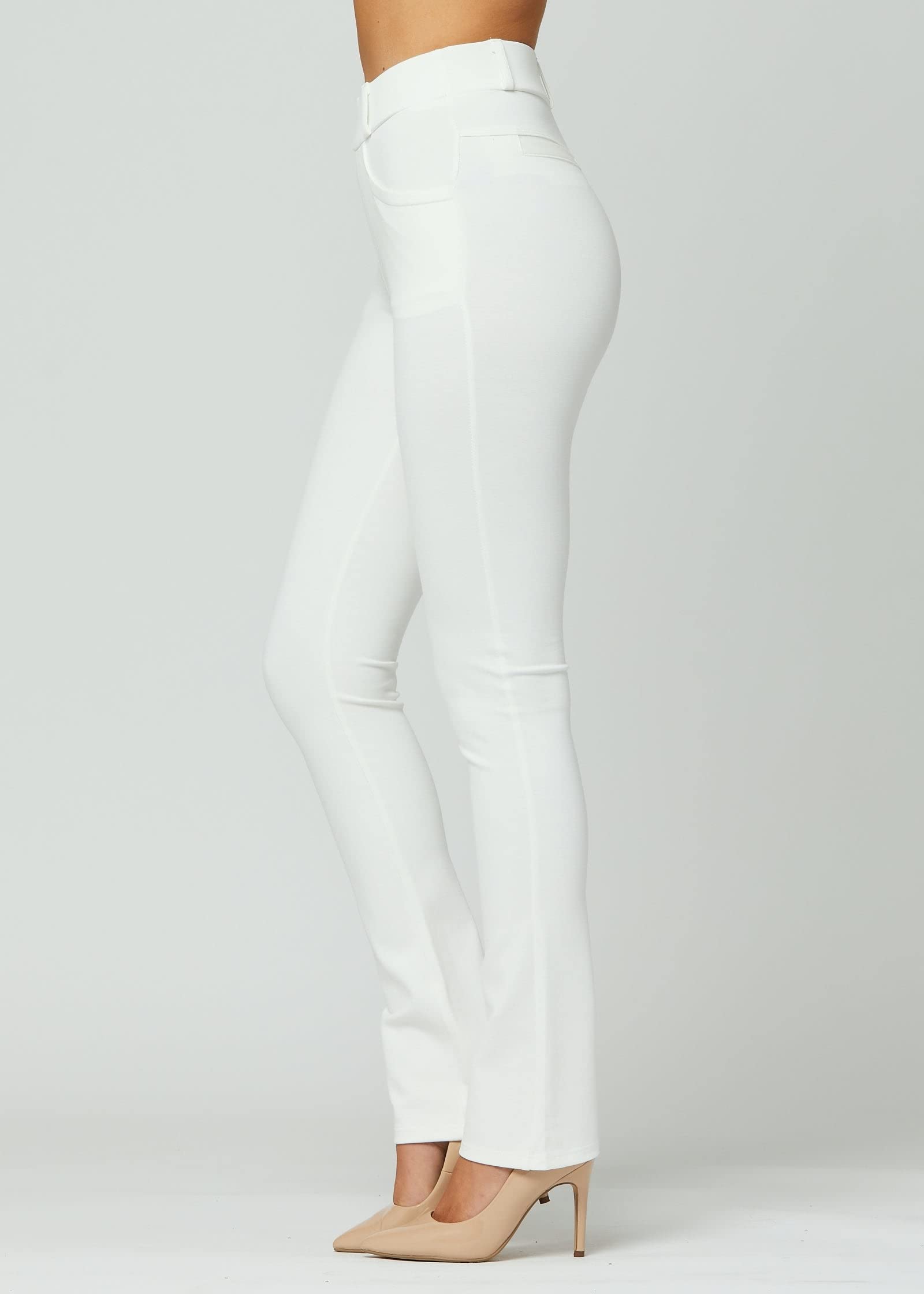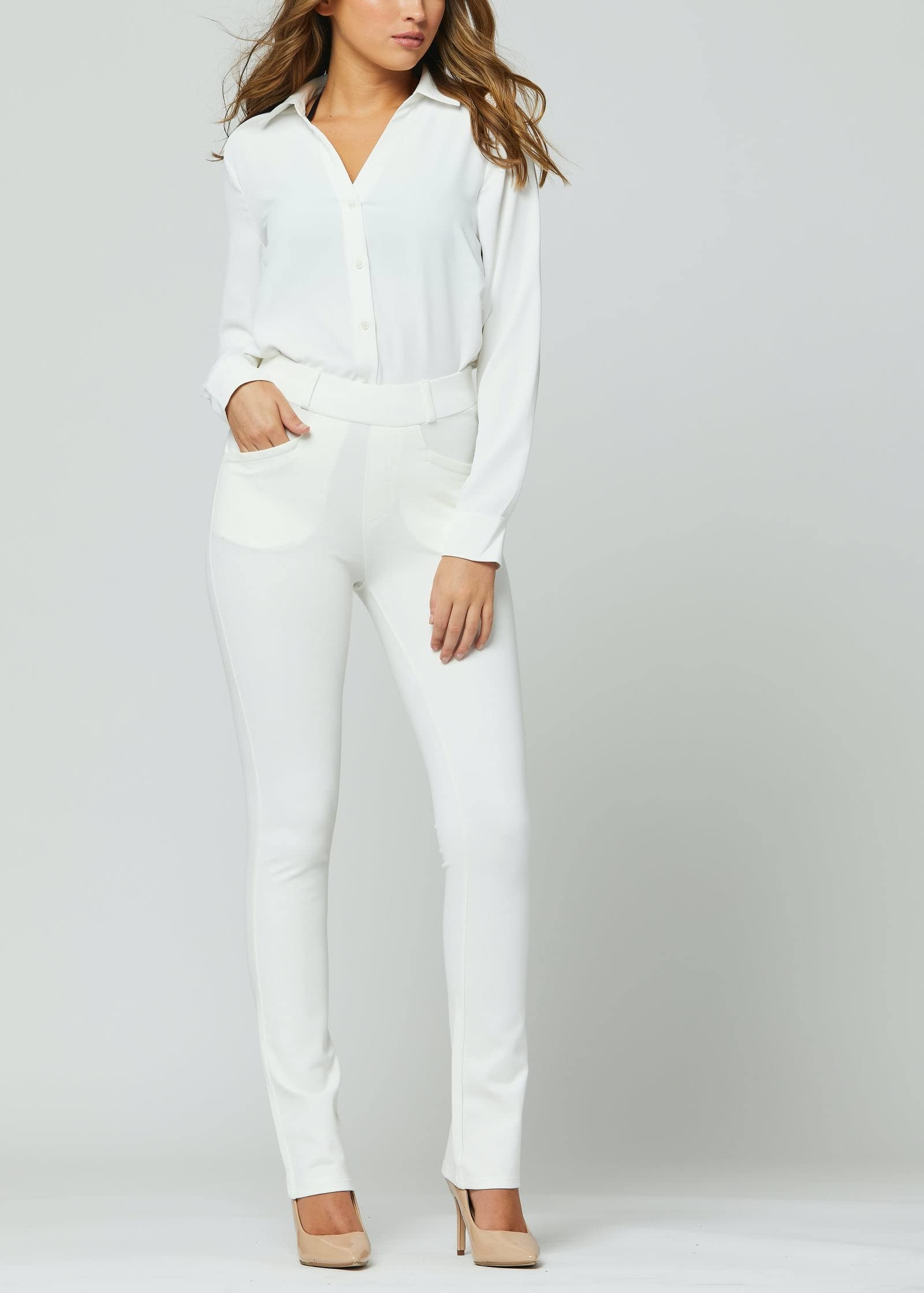 Conceited Premium Women's Stretch Dress Pants - Wear to Work - Ponte Treggings - Straight Leg - White - DP-Slim-Full-White-XS
