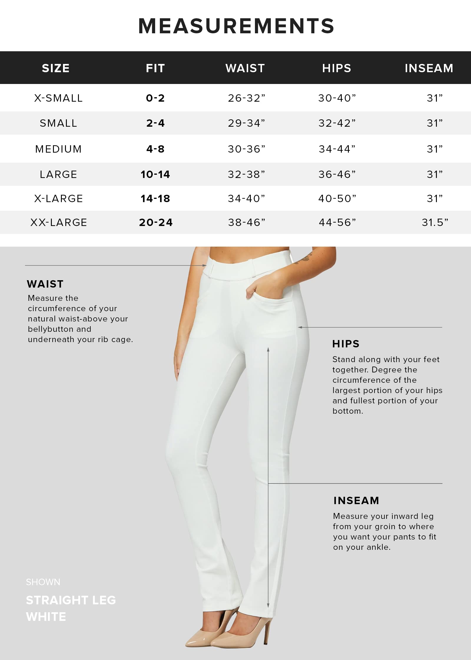 Details: Dressy style meets yoga comfort. A fan favorite, body-skimming yet non-restrictive, pant courtesy of their unique design. This skinny silhouette is cut from supportive stretch fabric for a figure-flattering fit that moves with you and holds its shape beautifully. They sit high on the waist thanks to an elastic waistband that draws you in with just the right amount of hold and feature convenient pockets for your daily essentials. Select all your favorites and never sacrifice comfort for style again! Invigorate your weekday wardrobe! These modern pants offer a personality-filled take on office pants with a high-rise profile and fitted legs that end at a cool cropped length. Create a polished look and be the talk of the office, then switch up your accessories for after-hours allure. Choose foundational basic colors or showcase your playful side with trendy prints. Coveted versatility that helps you stay happy hour ready, just in case. Pull-on style for effortless wear. Figure-flattering ankle length cut. Slimming high-waist elastic waistband. Soft, breathable stretch fabric for all day comfort. Functional front pockets and decorative welt faux-pockets in back. Available in 5 sizes for personalized style. High Rise, Pull-On, Ankle Length, Slim Fit, Sleek Fabric and 95% Polyester, 5% Spandex.