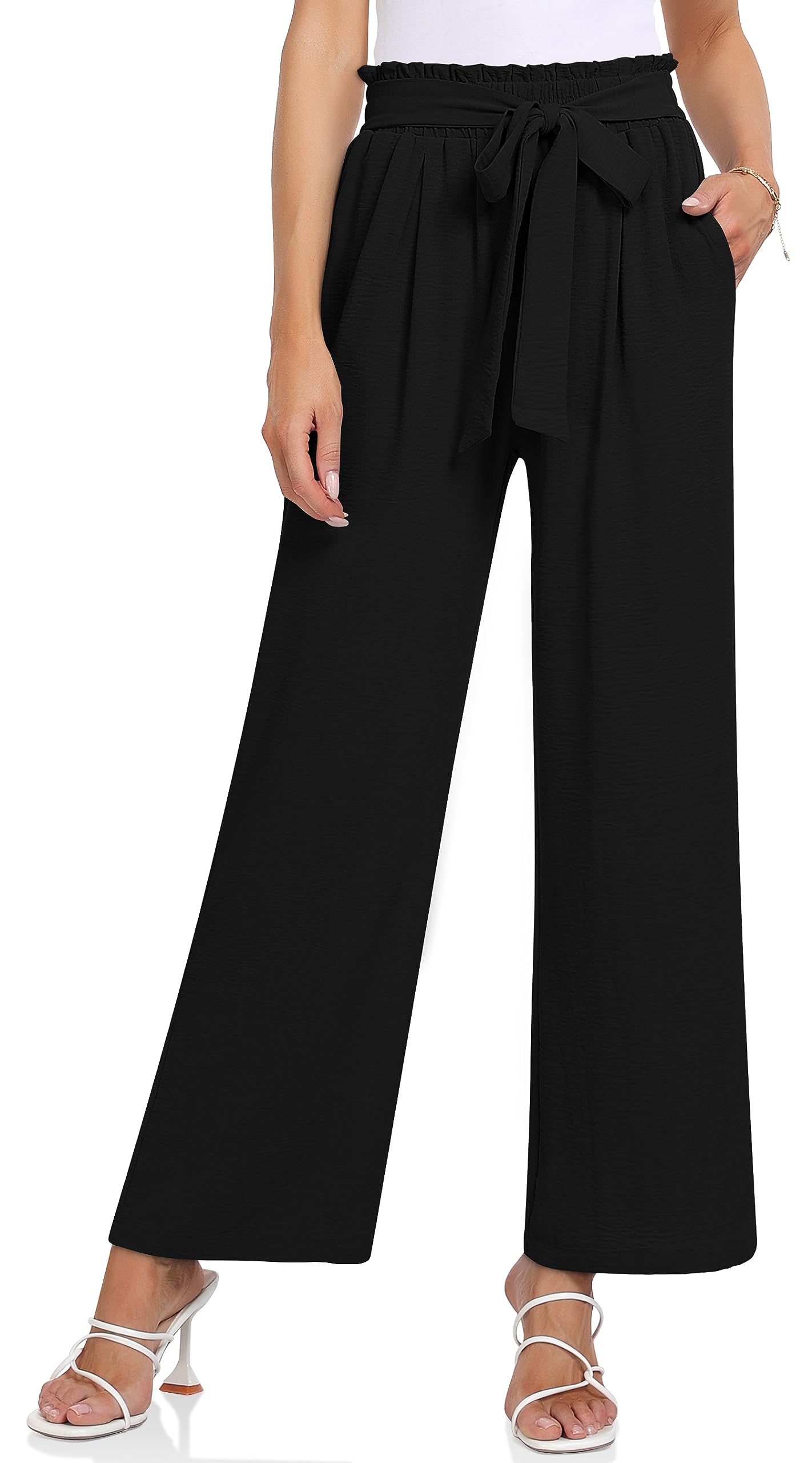 • BUSINESS CASUAL TROUSERS: Farewell to restrictive waistbands, TARSE women's high waist work pants feature a paper bag elastic waist on the back, design with an integrated tie knot waist belt on the front for an effortless fit and creating a sleek look.