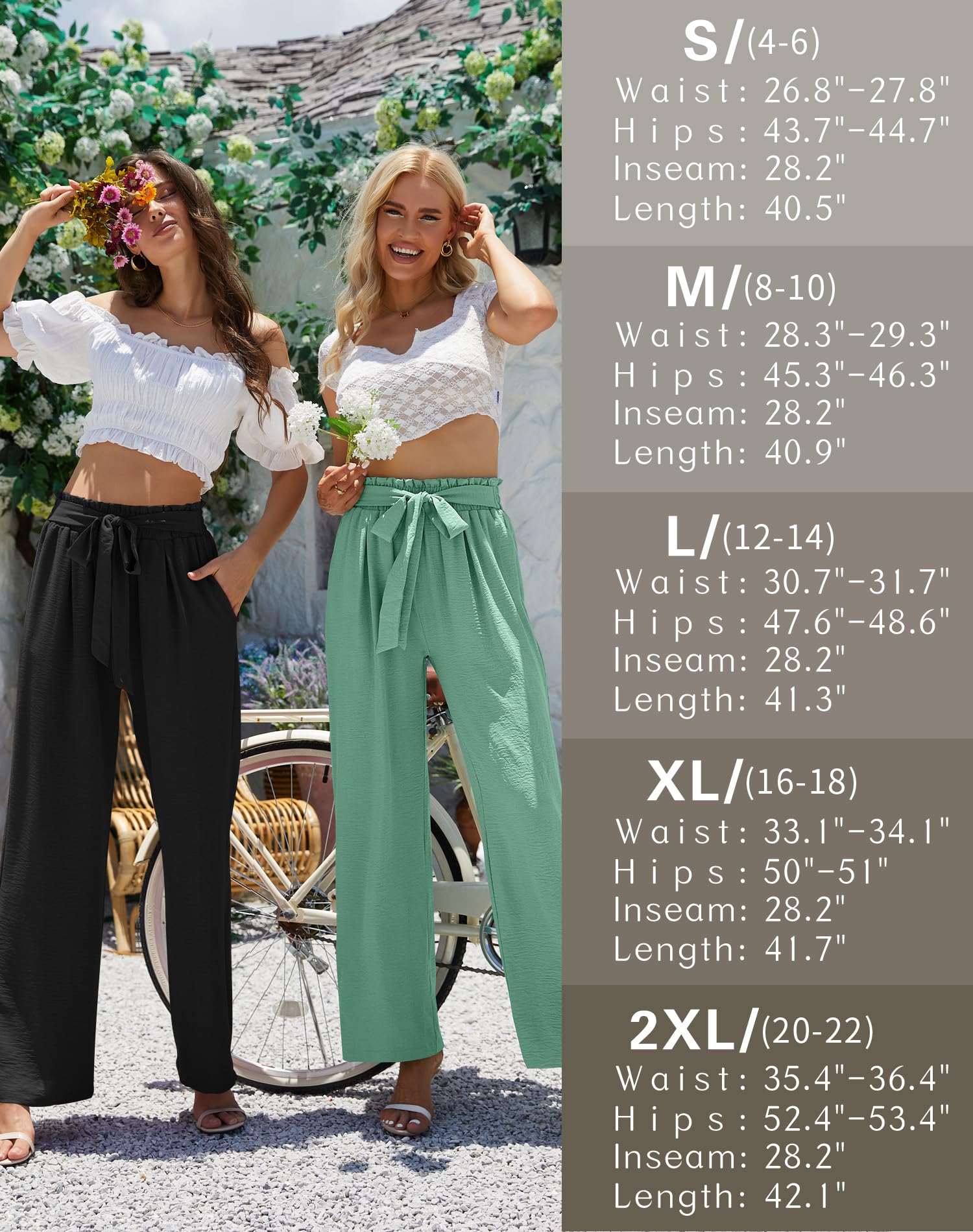 • SIZE INFO: S=4-6, M=8-10, L=12-14, XL=16-18, 2X=20-22, Inseam of dress pants women: 28.2". Item length: Size Small--40.55", Medium--40.94", Large--41.34", X-Large--41.73", XX-Large--42.12".