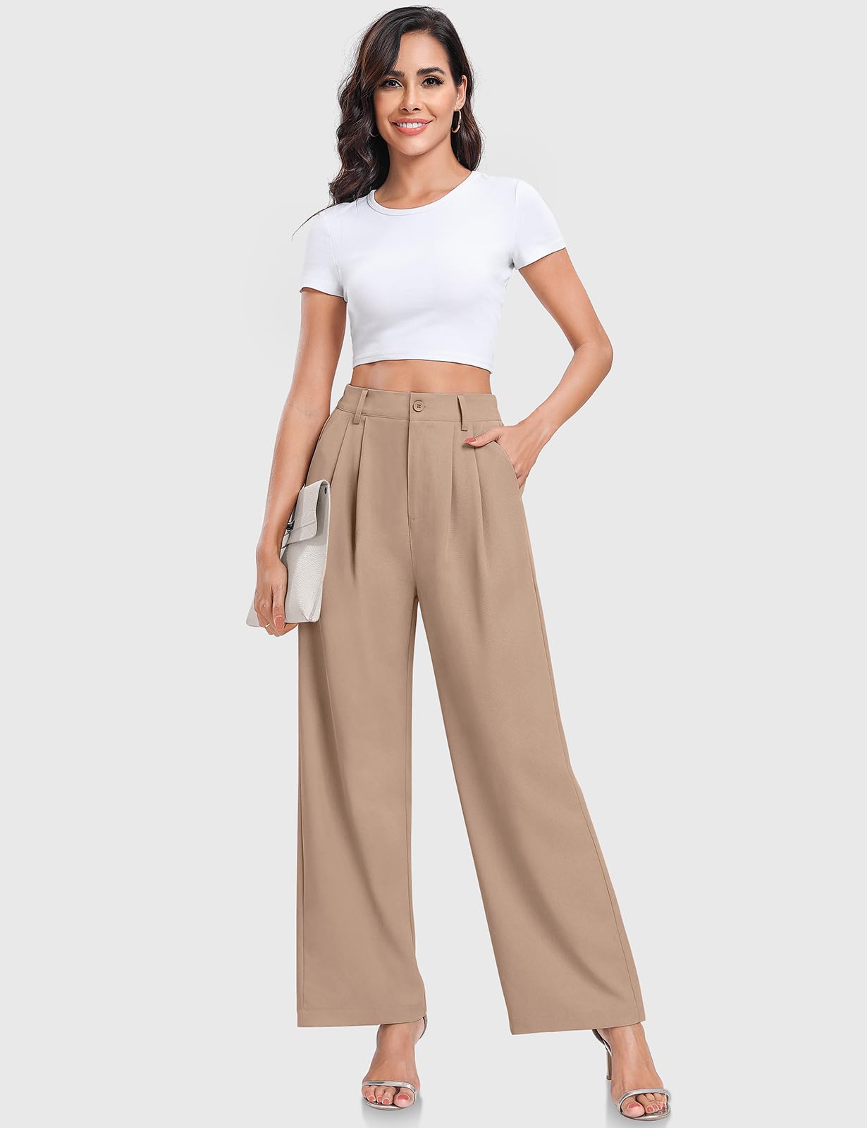 • Skin-Friendly: Wide Leg Work Dress Pants breathable, comfy and lightweight; The fabric soft-touched won't rub your delicate skin, flowy polyester and spandex fabric to offer relaxing freedom while working.