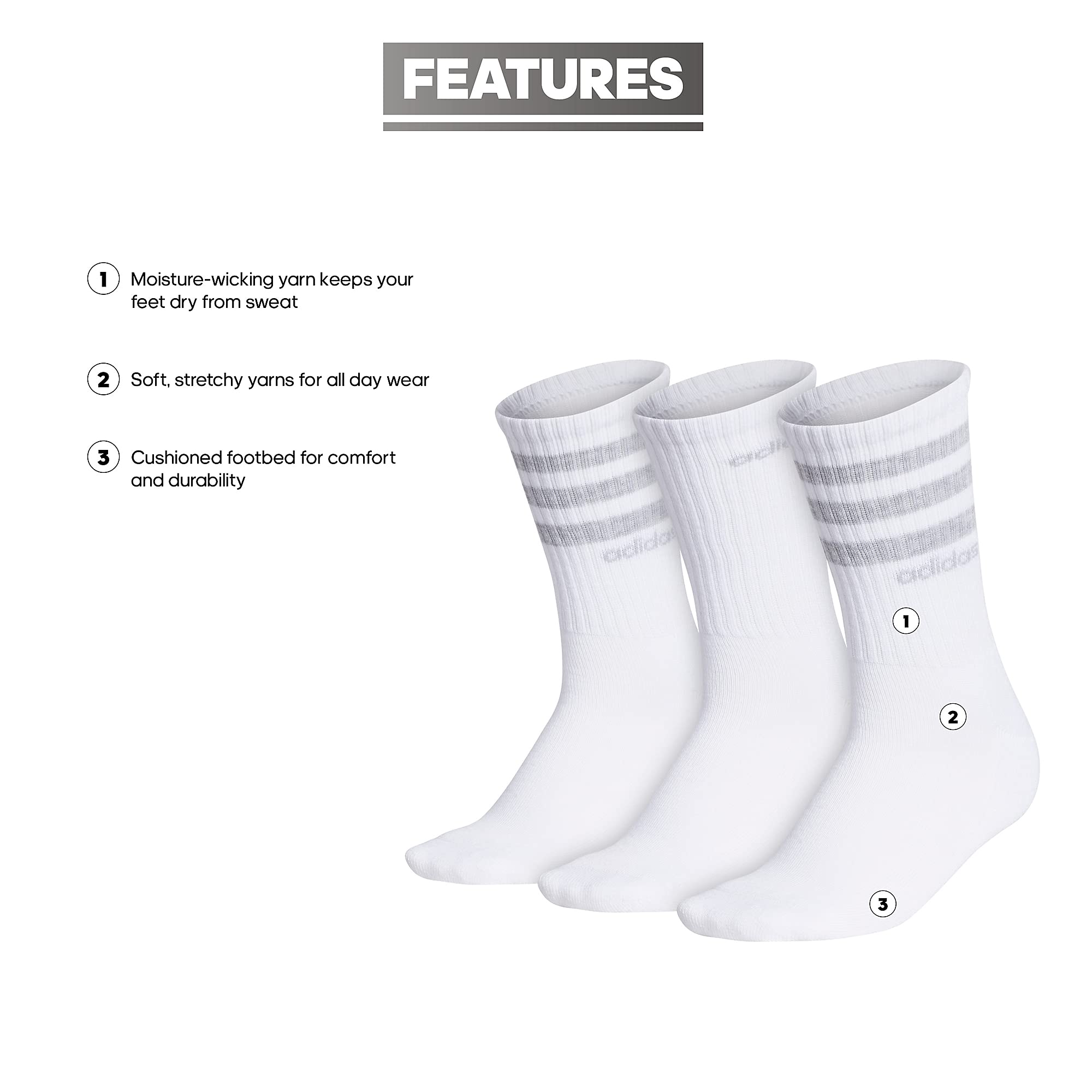 adidas Women's 3-Stripe Crew Socks (3-Pair), White/Cool Light Heather/Clear Onix Grey, Medium