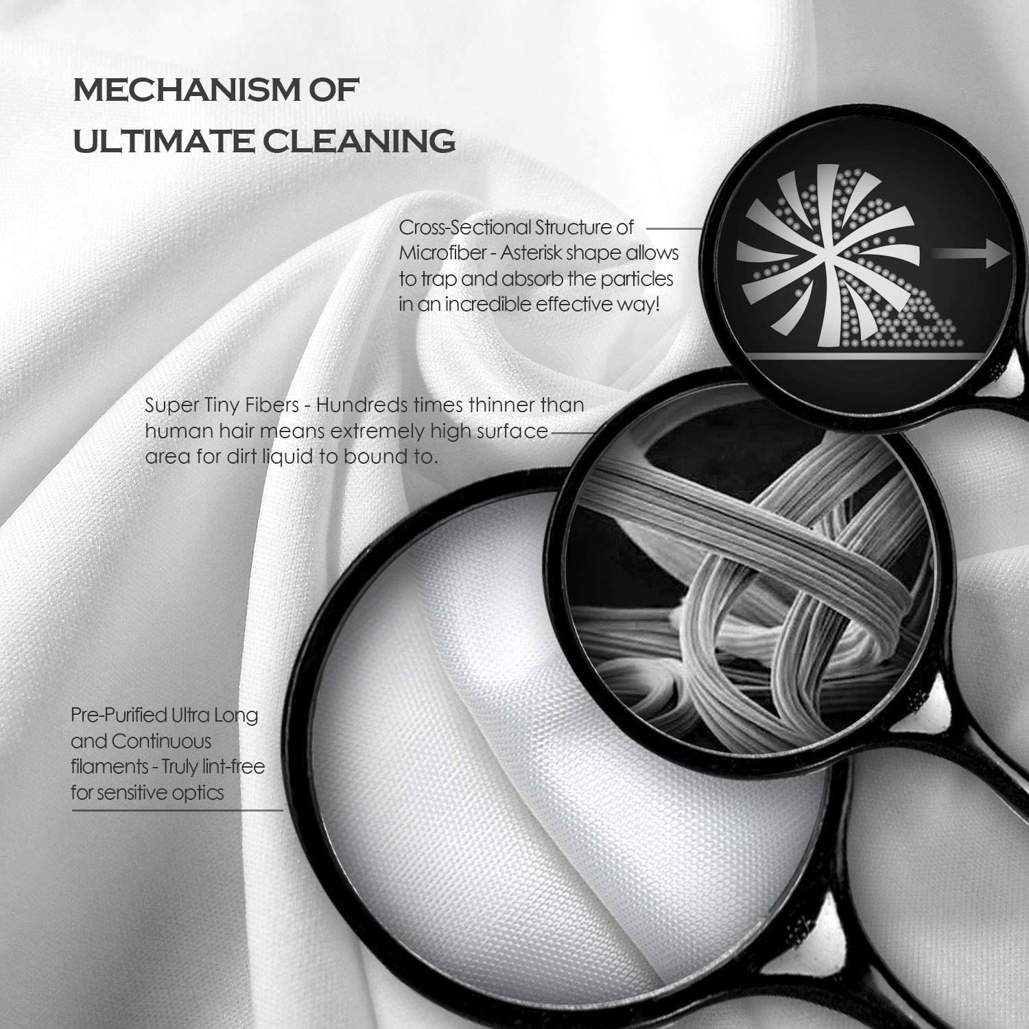 • FEATURES: Microfiber cleaning cloth is excellent and high-density weaving structure to trap and absorb the particles in an incredible effective way. Ultra-fine fibers have the excellent capillary effect ,fast dry as it was one of the notable characteristics, high-strength synthetic fiber filamet ,fine touch, soft, not easy to break ,the fibers don't easily fall off, truly lint-free for sensitive optics.