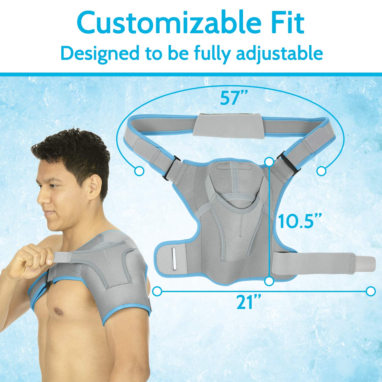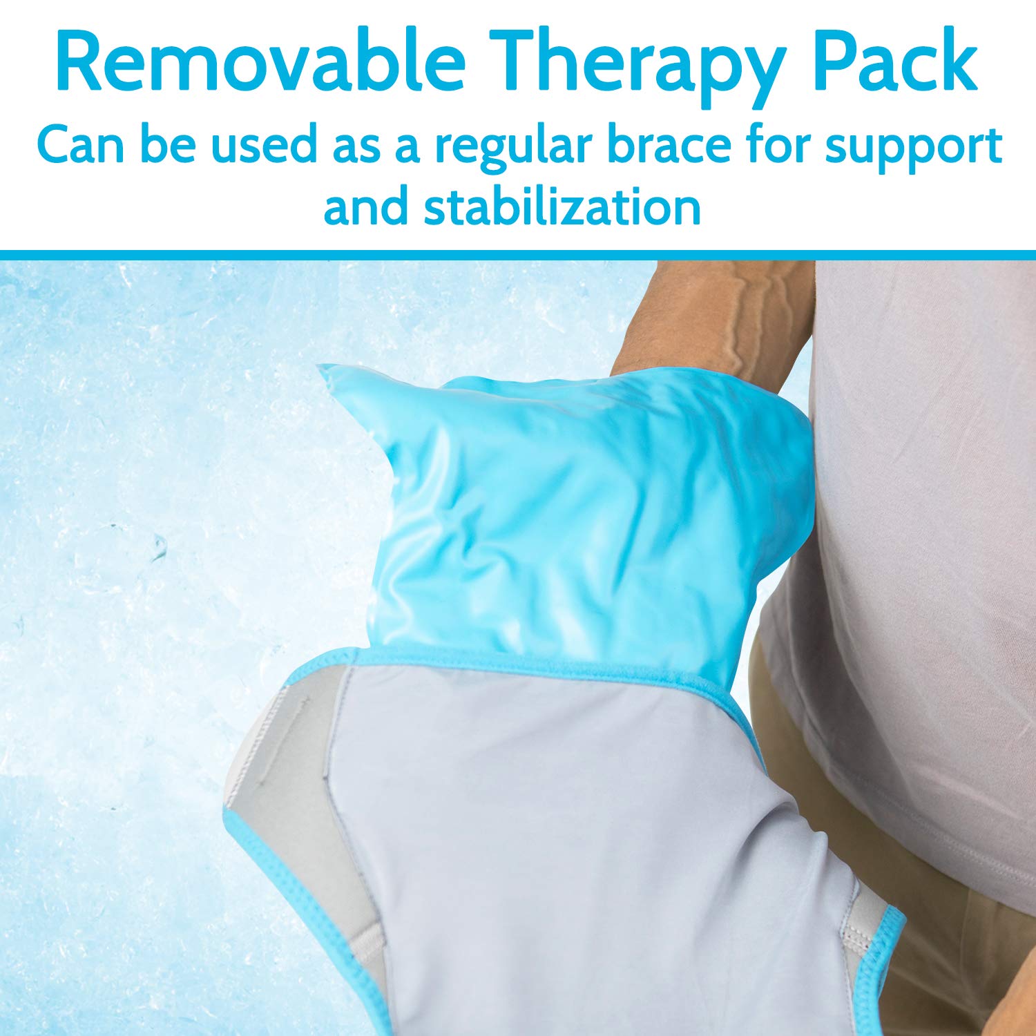 • FLEXIBLE HOT OR COLD THERAPY: Secured in an interior mesh pocket, the cold shoulder brace includes a large, uniquely shaped Arctic Flex gel pack that remains flexible when frozen to comfortably contour to the shoulder for soothing relief. The durable, leakproof pack is filled with a nontoxic gel that can also be used for heat therapy to reduce stiffness, increase circulation and improve mobility.