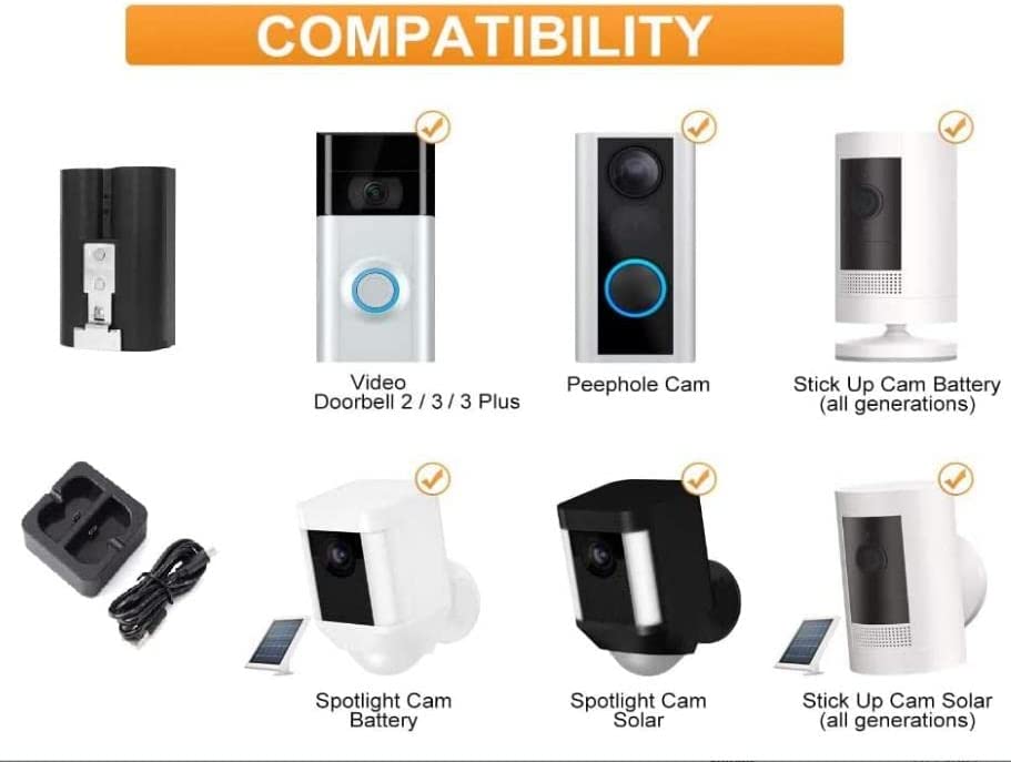 • 【Li-ion Ring, Doorbell】: Li-ion Rechargeable Battery compatible with Ring 3.65V 6040mAh,Professional Replacement . Premium Li-ion Cells for Longer Battery Life with no Memory Effect. Batteries Can be Charged or Discharged at Any Time Without Harm.