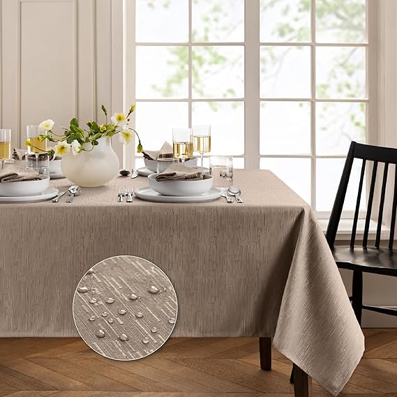 Elrene Home Fashions Continental Solid Texture Water, Stain & Wrinkle Resistant Tablecloth, 60"X144" Rectangle, Taupe