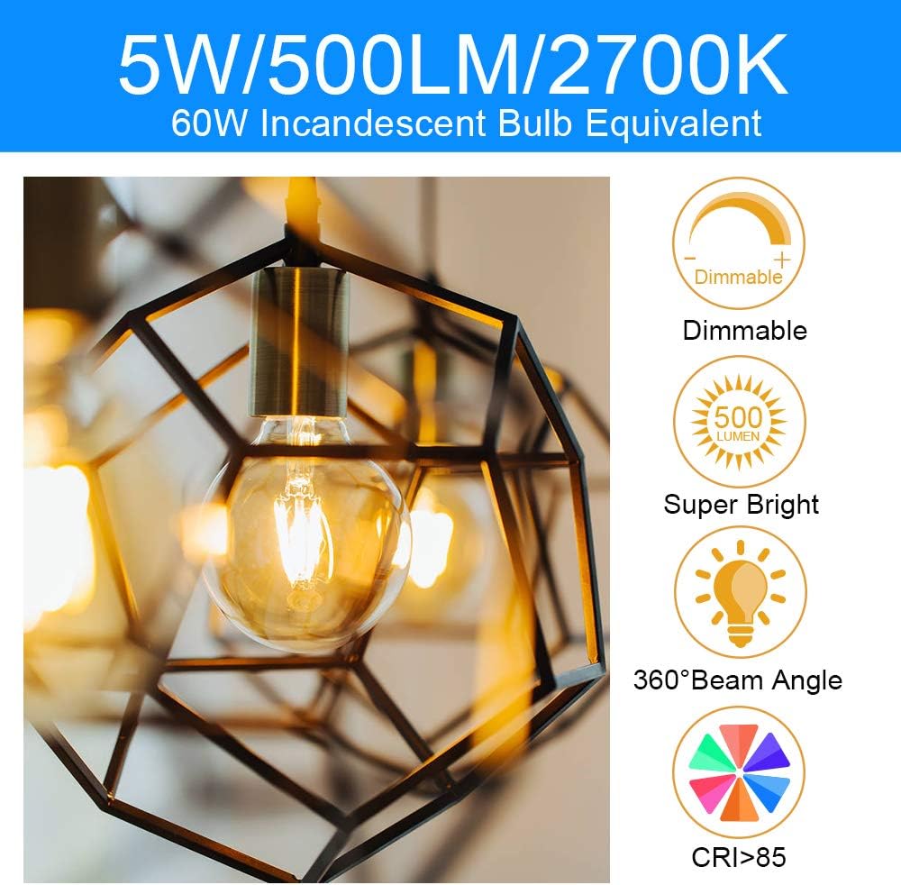 • 💡[Dimmable] Round Light Bulb is compatible with most dimmers by Advanced Technics, which ensures 0-100% brightness adjusted smoothly as you want for different scenes