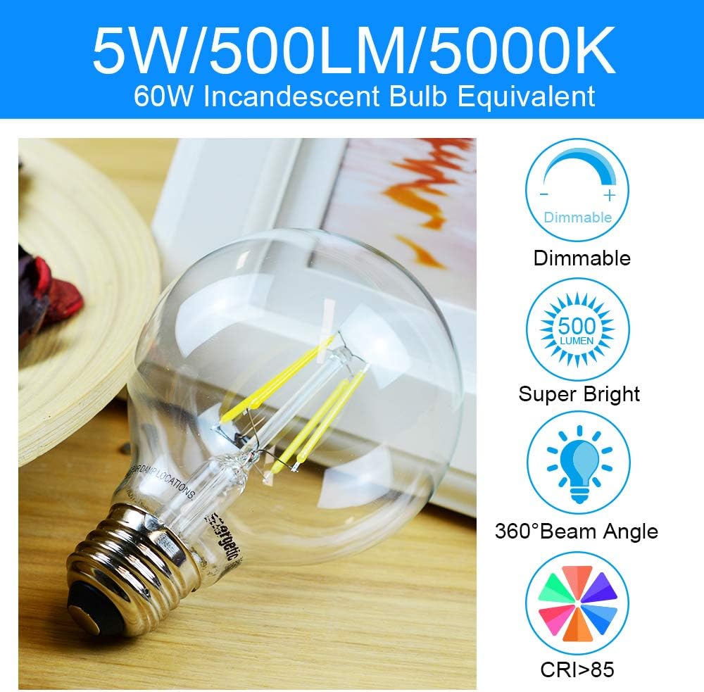 • 💡[Technical Features] 6-Pack, G25 shape, Dimmable, 500lumens, 5000K Daylight, CRI85+, AC-120V, Instant on