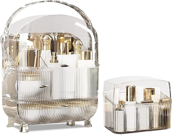 Ergocar Galat�©e Portable Retro Series Multi-Function Make Up Case Dustproof Cosmetic Storage Box, Skin Care Products Jewelry Organizer Finishing Box - High Transparency + Lipstick Box