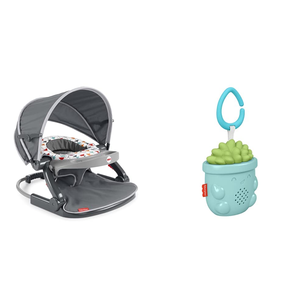 Fisher-Price Travel Baby Chair On-The-Go Sit-Me-Up Floor Seat with Snack Tray and Canopy for Outdoor Use, Arrows Away