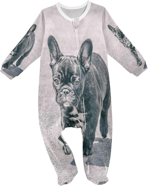 French Bulldog Puppy Gray Baby One-Piece Footies Newborn Boys Girls Rompers Pajamas Cotton Sleep Play Footed Pjs