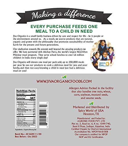 • ❤️️ Jiva Organics donates one meal to a child in need for every pack sold. Last year, we donated over 250,000 meals with your help!