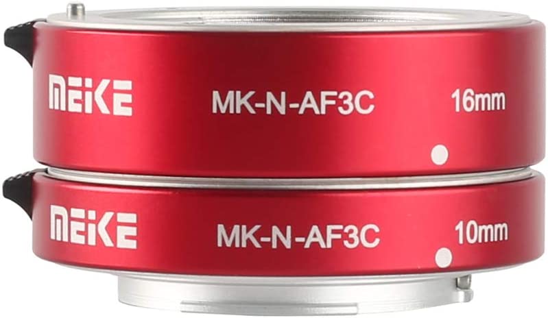 • Meike MK-N-AF3C-Blue Tube diameter : Macro extension tube can be used alone or in superimposed,When using the extension tubes alone (10 mm or 16 mm) or combination (10mm+16mm=26mm), the focal length of lens should be greater than the length (10mm 16mm or 26mm ) of the tube.