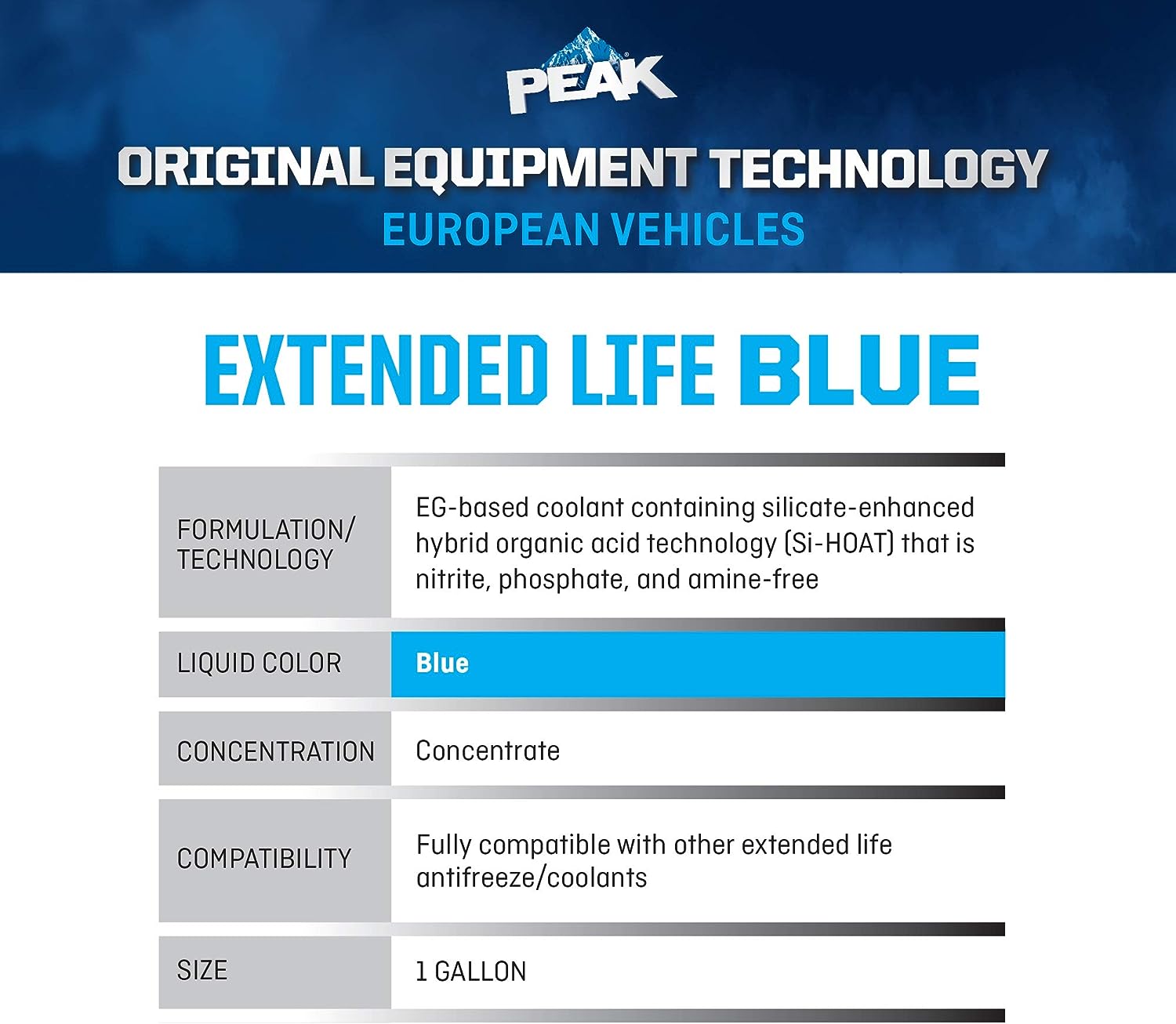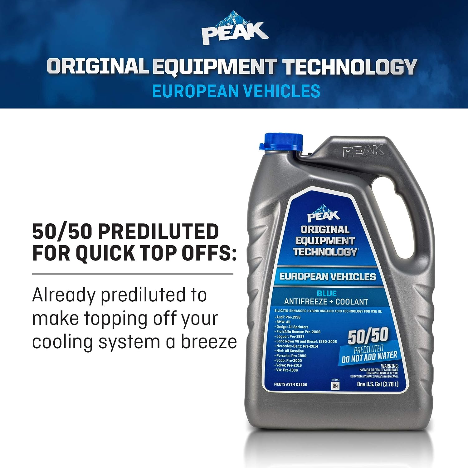 PEAK OET Extended Life Blue 50/50 Prediluted Antifreeze/Coolant for European Vehicles, 1 Gal.