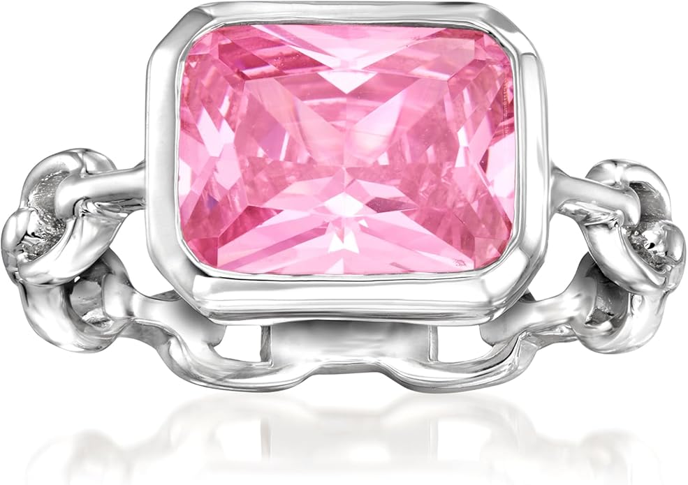 Ross-Simons 4.20 Carat Simulated Pink Sapphire Paper Clip Link Ring in Sterling Silver