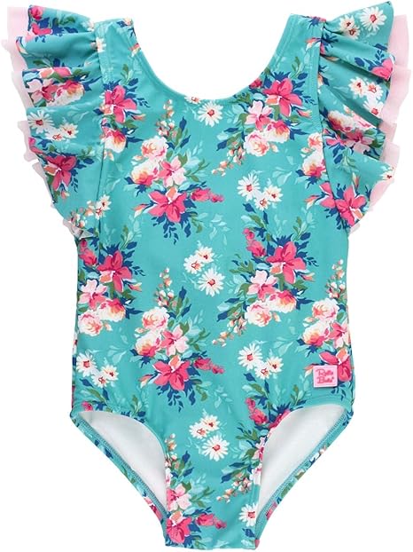 RuffleButtsÔÎ Baby/Toddler Girls Long Sleeve Rash Guard 2 Piece Swimsuit Set w/UPF 50+ Sun Protection with Zipper