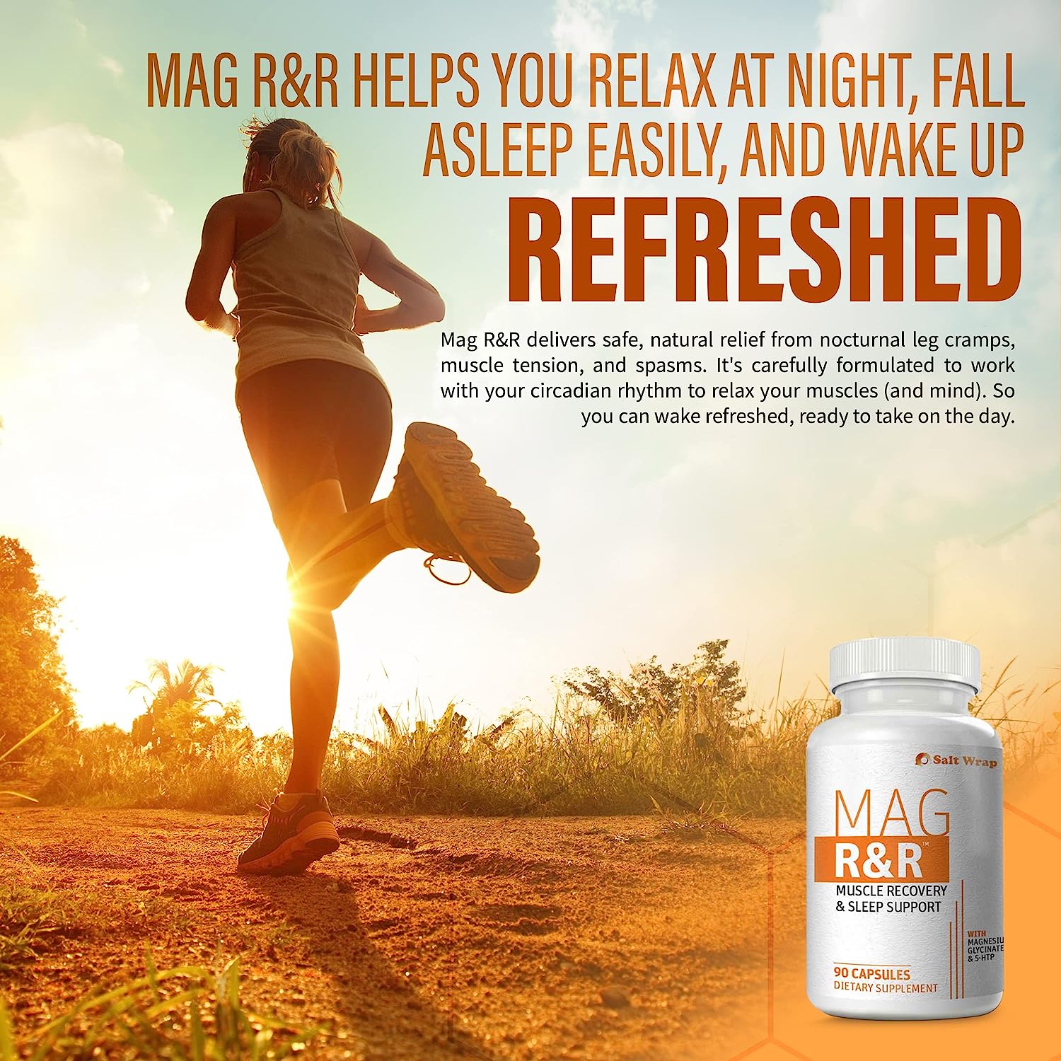 SaltWrap Mag R&R - Nighttime Muscle Cramps Support, Natural Sleep Support for Adults with Magnesium Glycinate for Muscle Spasm and Leg Cramps Relief, 90 Capsules