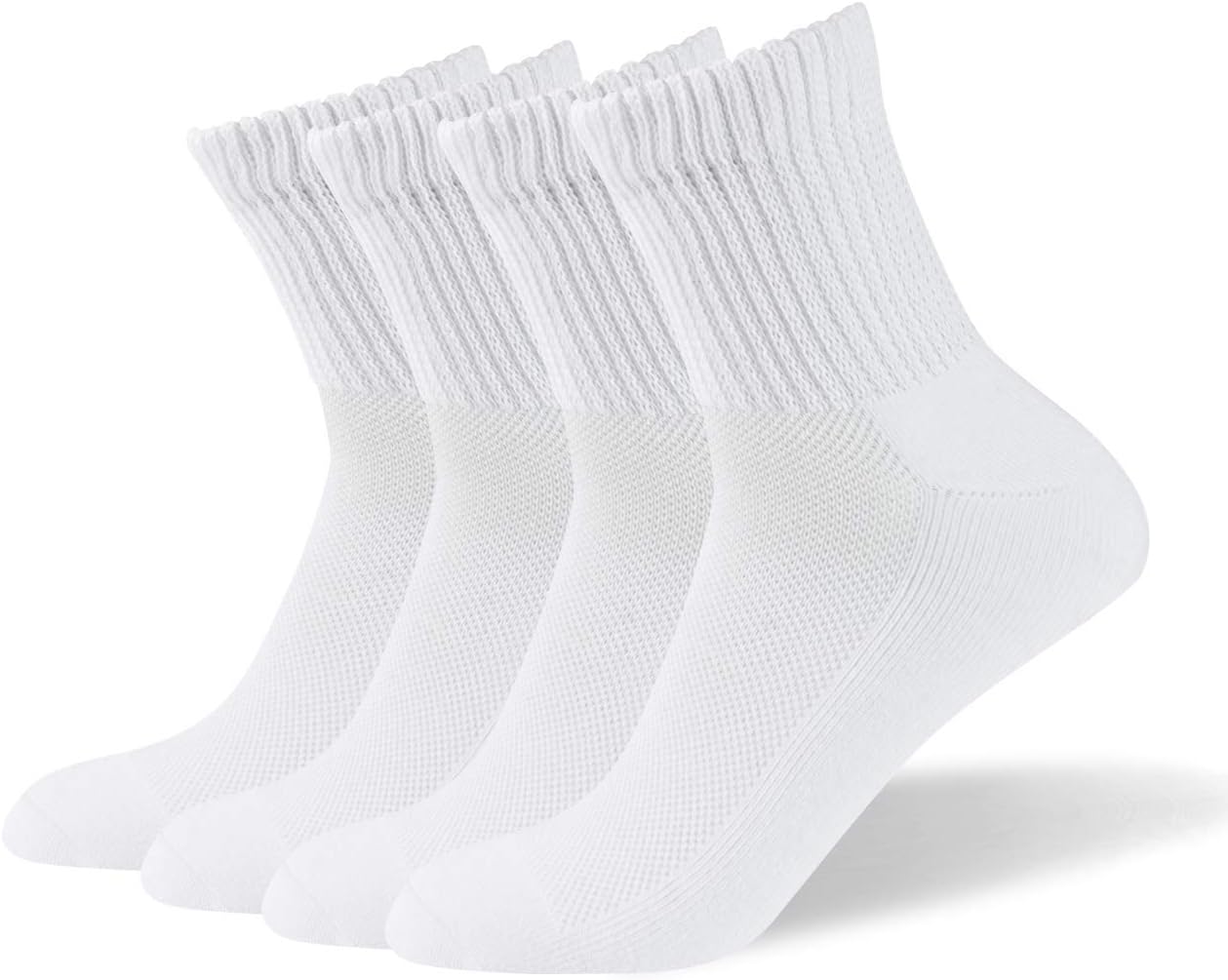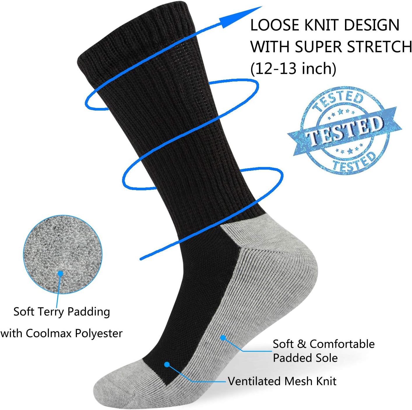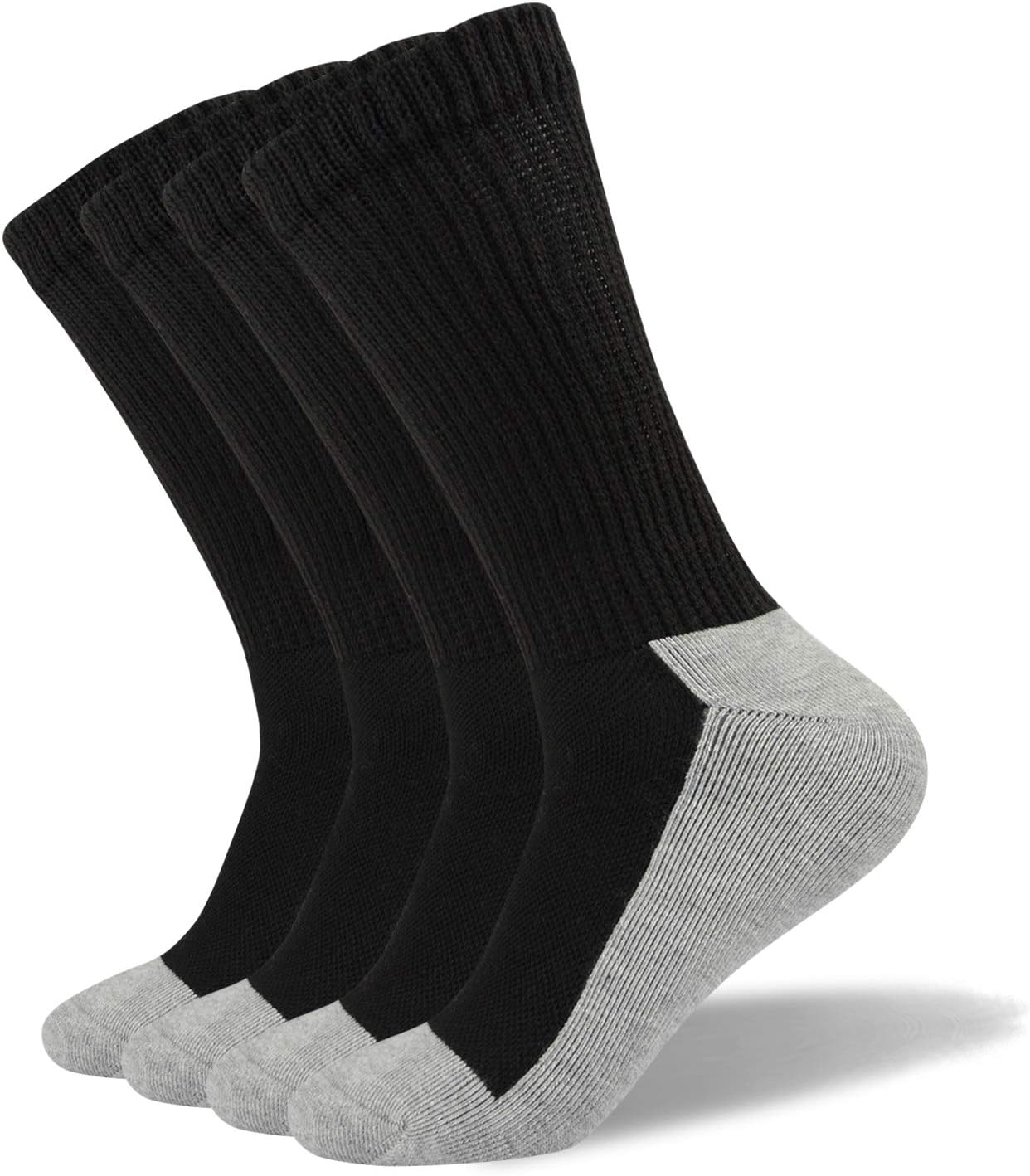 Well Knitting Loose Men's Diabetic Crew Socks,Non-Binding Top,Seamless Toe,Semi Cushion,Breathable Soft Coolmax Socks 4 Pairs